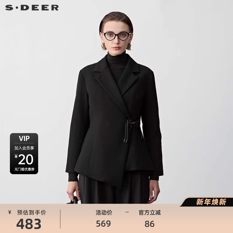 sdeer圣迪奥女装西装领盘扣轻薄新中式羽绒服S24463102