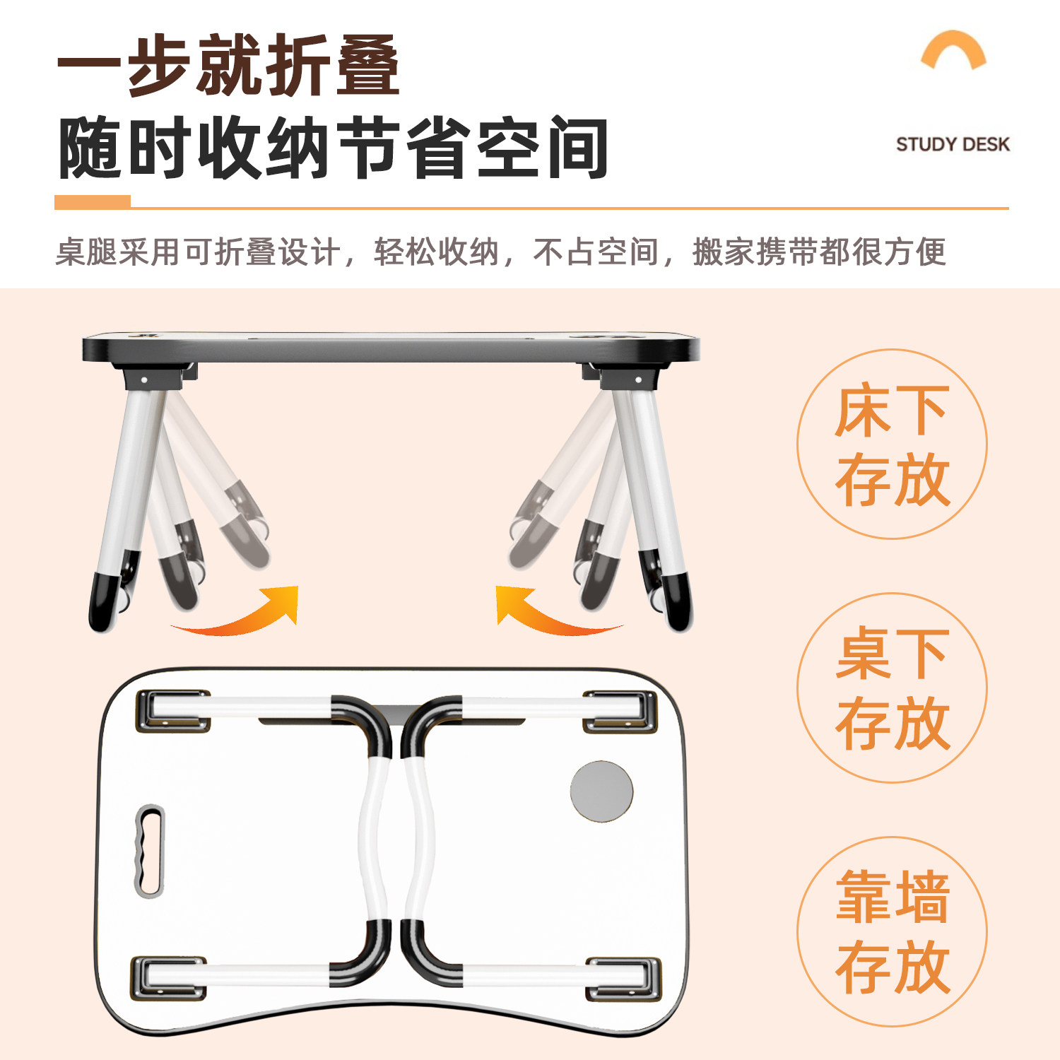 可升降折叠床上小桌子简约宿舍学生写字床上书桌学习调节高度支架家用卧室坐地飘窗懒人笔记本电脑办公小桌板