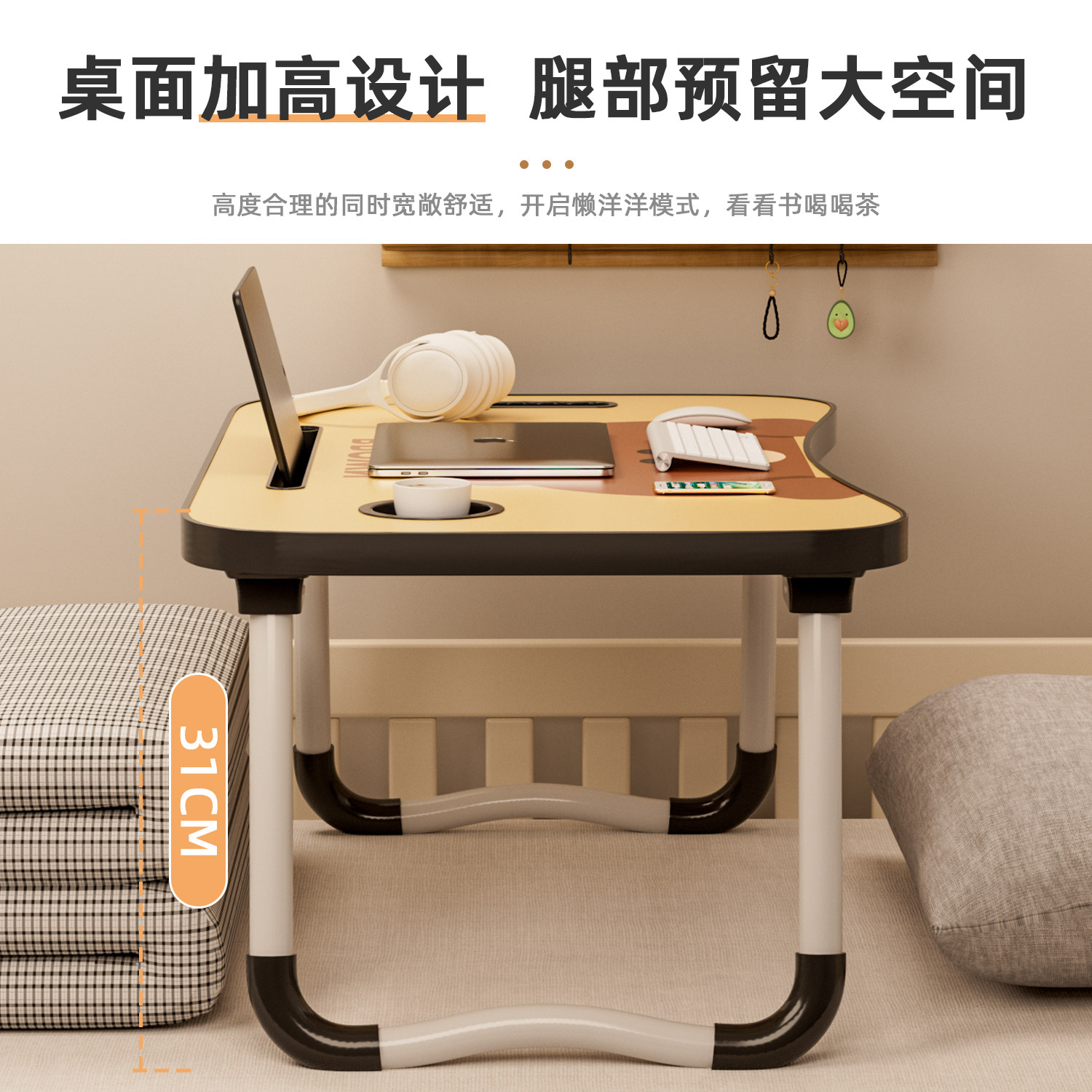 床上小桌子电脑桌家用学生笔记本膝上桌可折叠床边桌学生宿舍学习桌卧室坐地办公桌子便携式飘窗小桌板