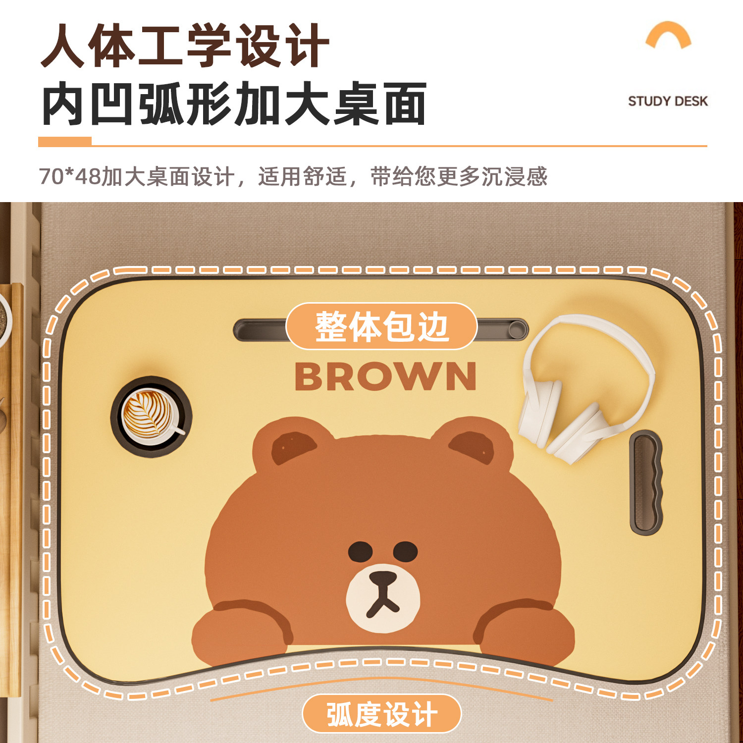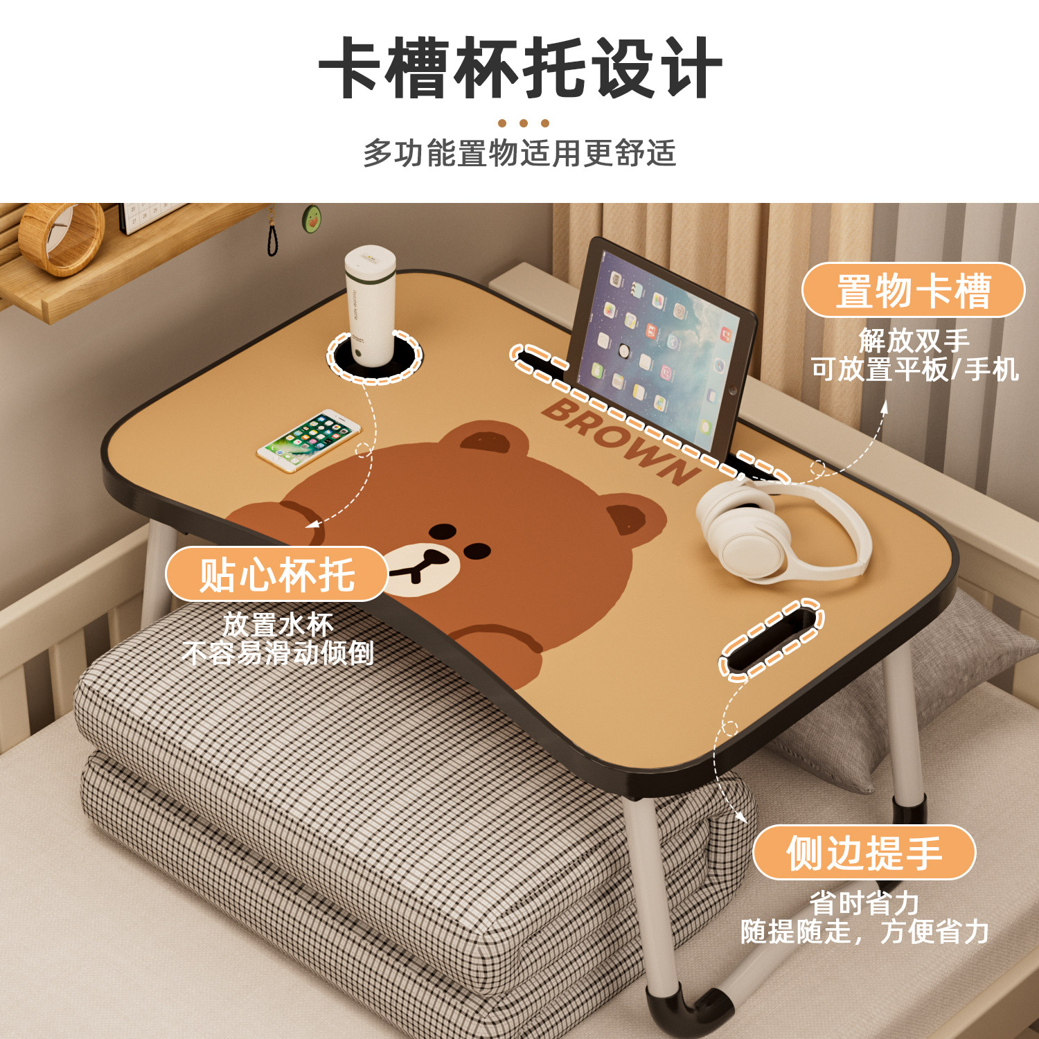 【LINE布朗熊正版授权】床上小桌子折叠桌学生床头宿舍书桌笔记本电脑支架懒人卧室坐地学习移动多功能小桌板