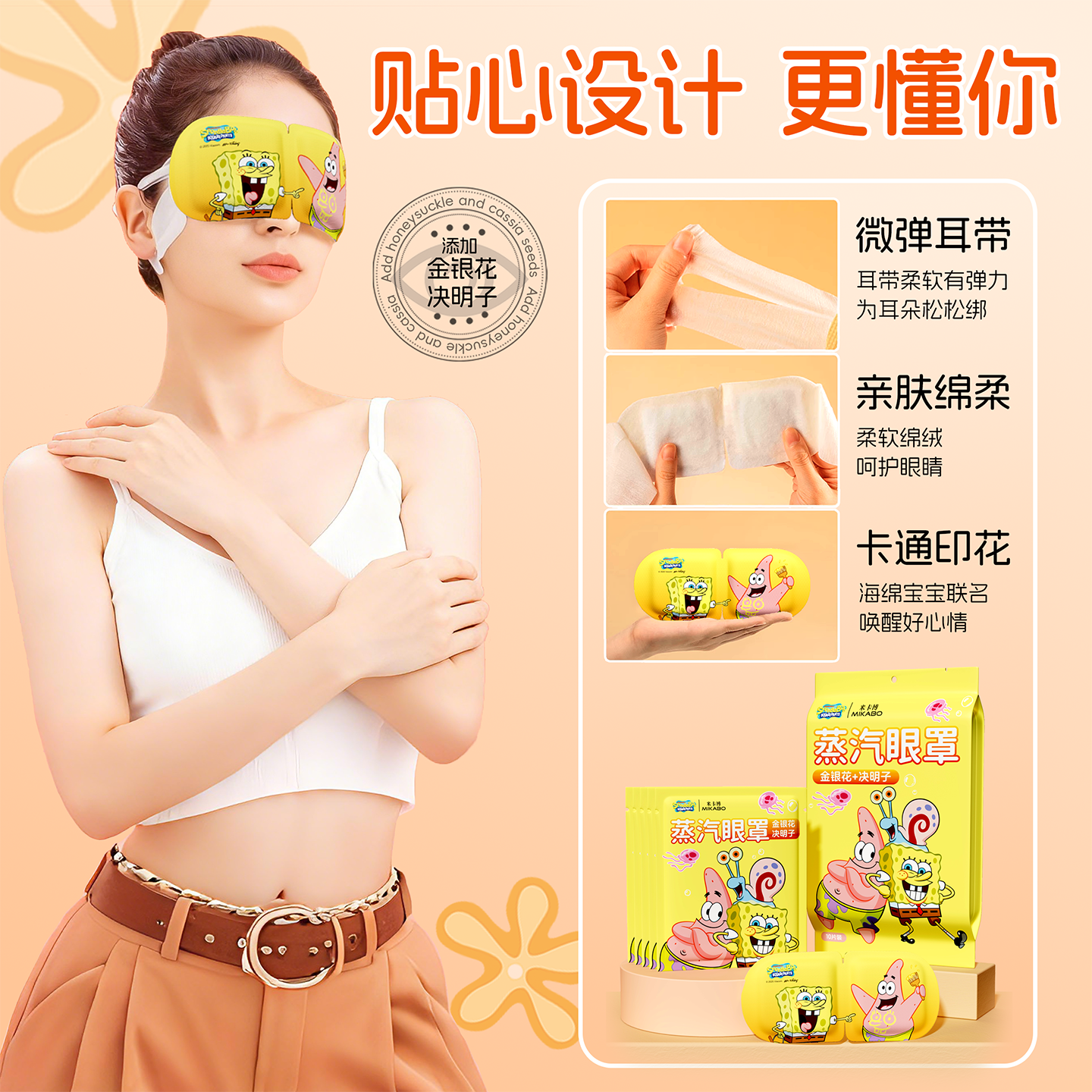米卡博海绵宝宝金银花决明子蒸汽眼罩10片起