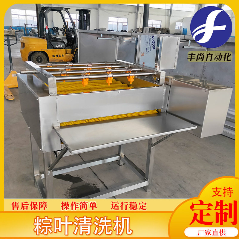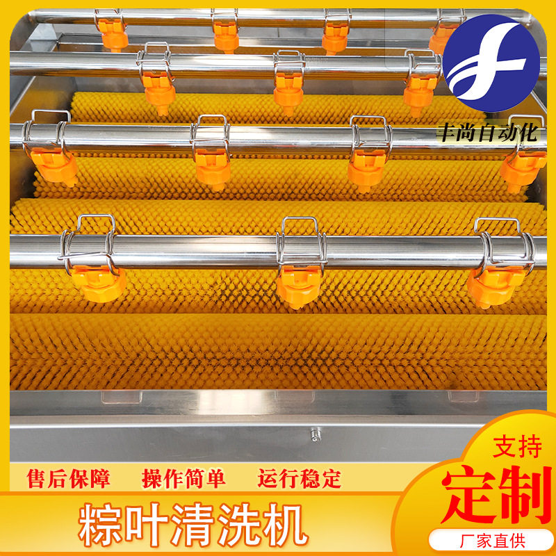 喷淋式粽叶清洗机 双层毛辊叶类清洗设备 平行式竹叶箬叶清洗机器