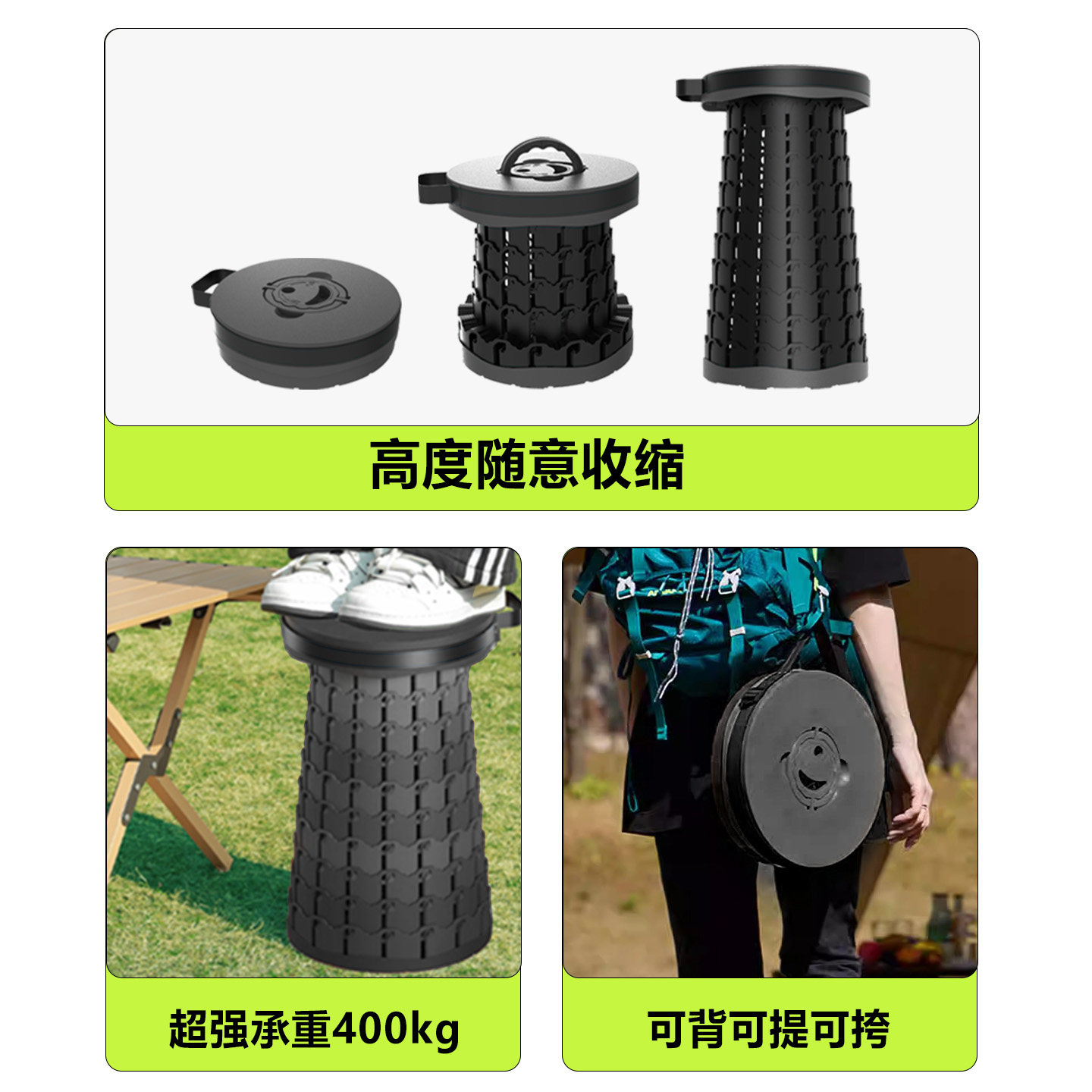 LOCYOP十四代加高折叠凳伸缩凳子加大可调节户外便携椅子排队座椅