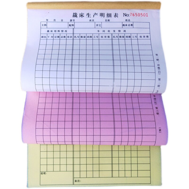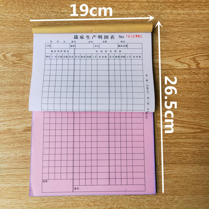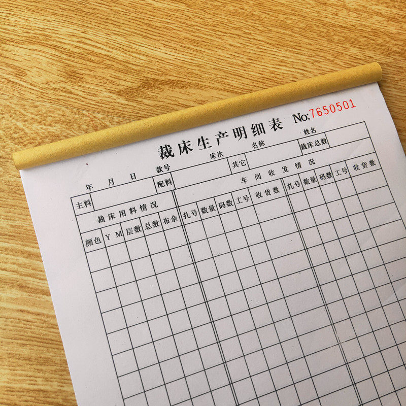 16开裁床生产明细表服装厂计件车间生产用料记录表二联三联裁床单