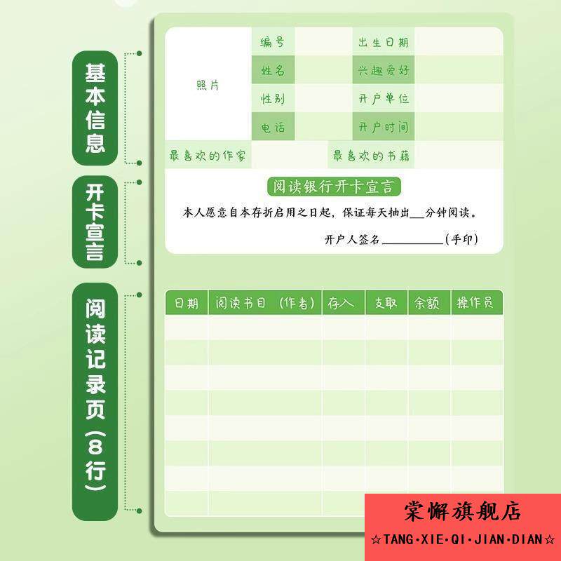 阅读存折记录本小学生课外阅读登记册一二年级三年级读书存折学习积分卡奖励孩子的幼儿园儿童卡通打卡收集本