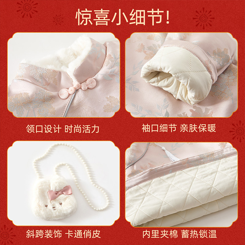 班喜迪女童汉服拜年服冬装宝宝周岁礼服连衣裙国风旗袍裙儿童衣服