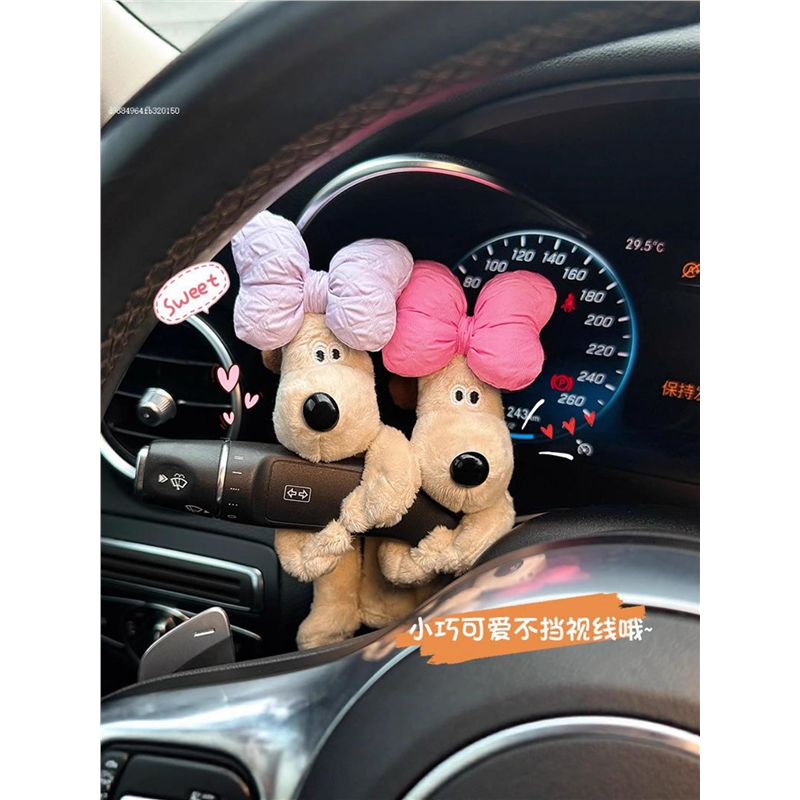 蝴蝶结狗狗汽车怀挡装饰车载转向灯雨刷器创意公仔摆件车内饰品女