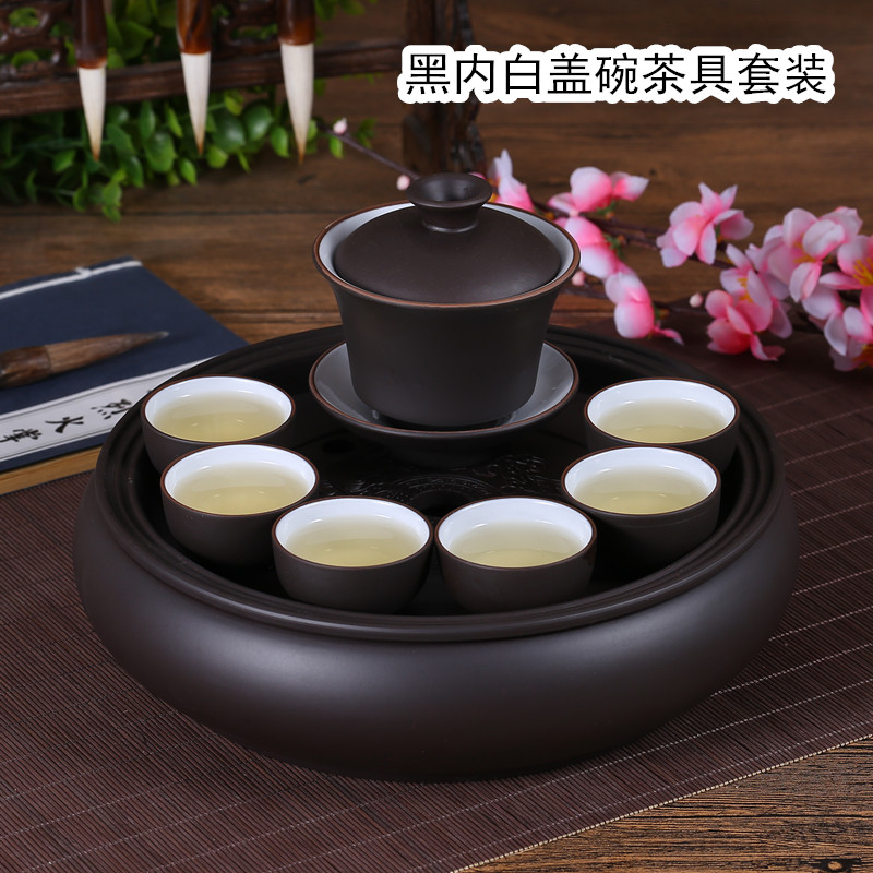 现代茶具套装家用功夫紫砂茶盘潮汕陶瓷茶杯整套泡茶简约圆形茶壶
