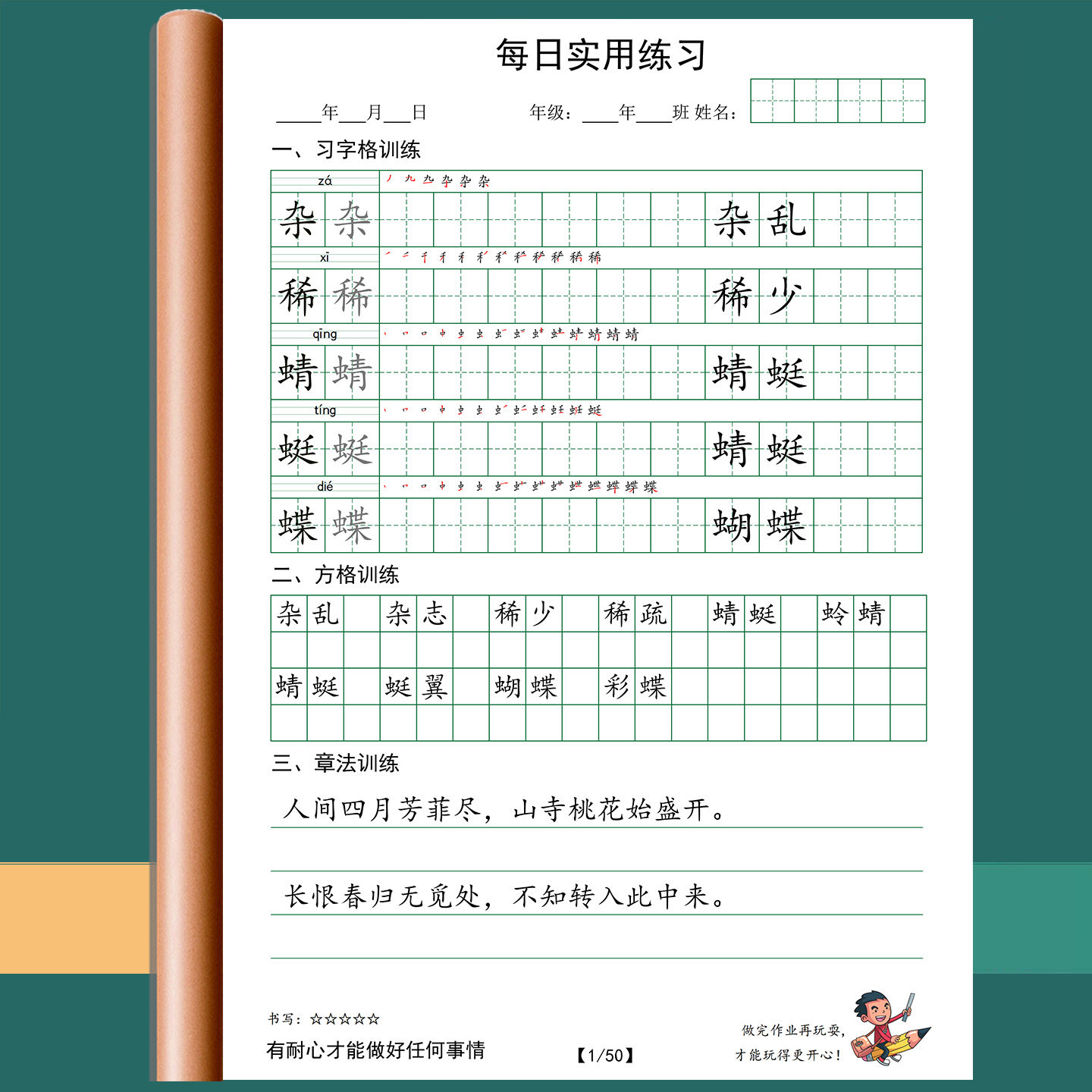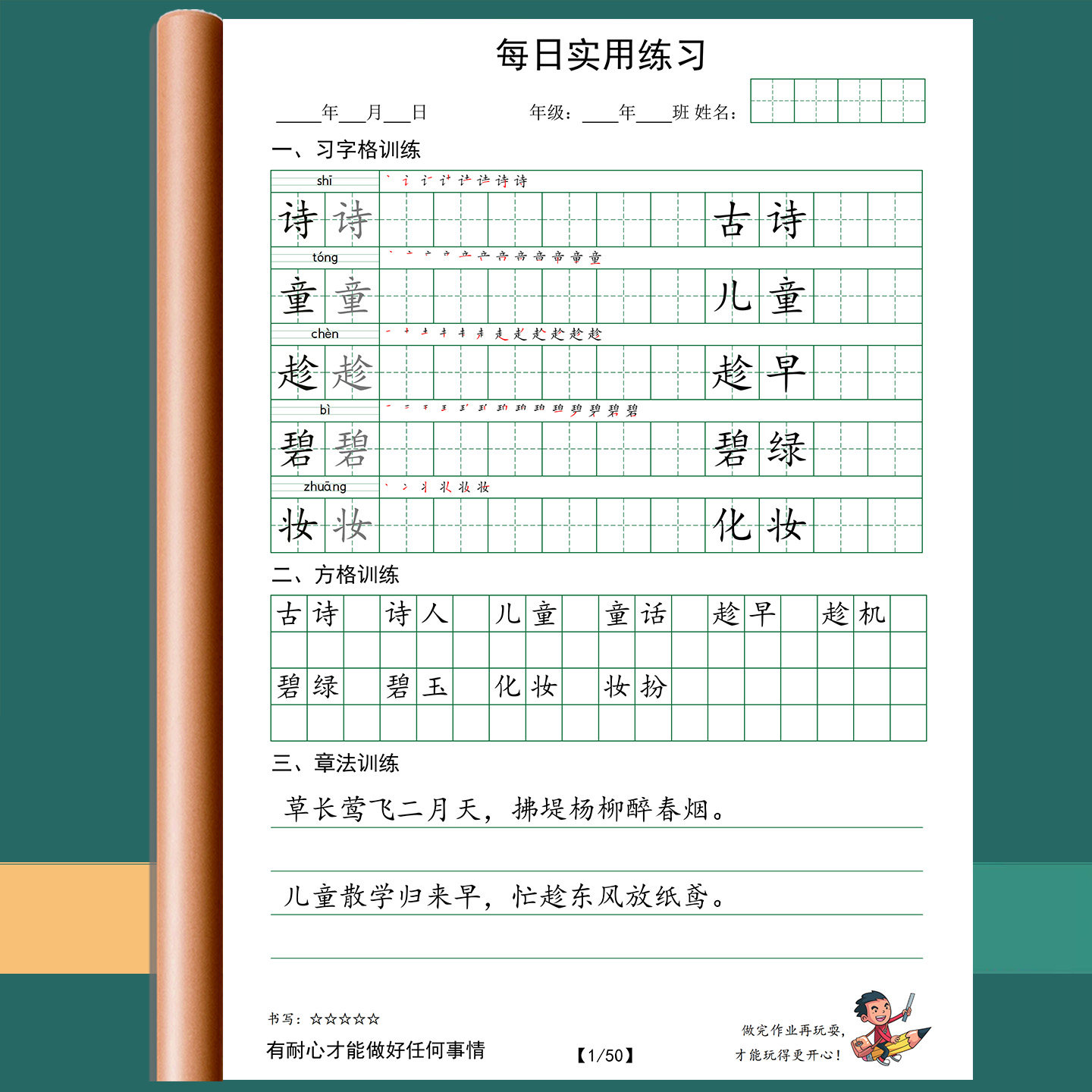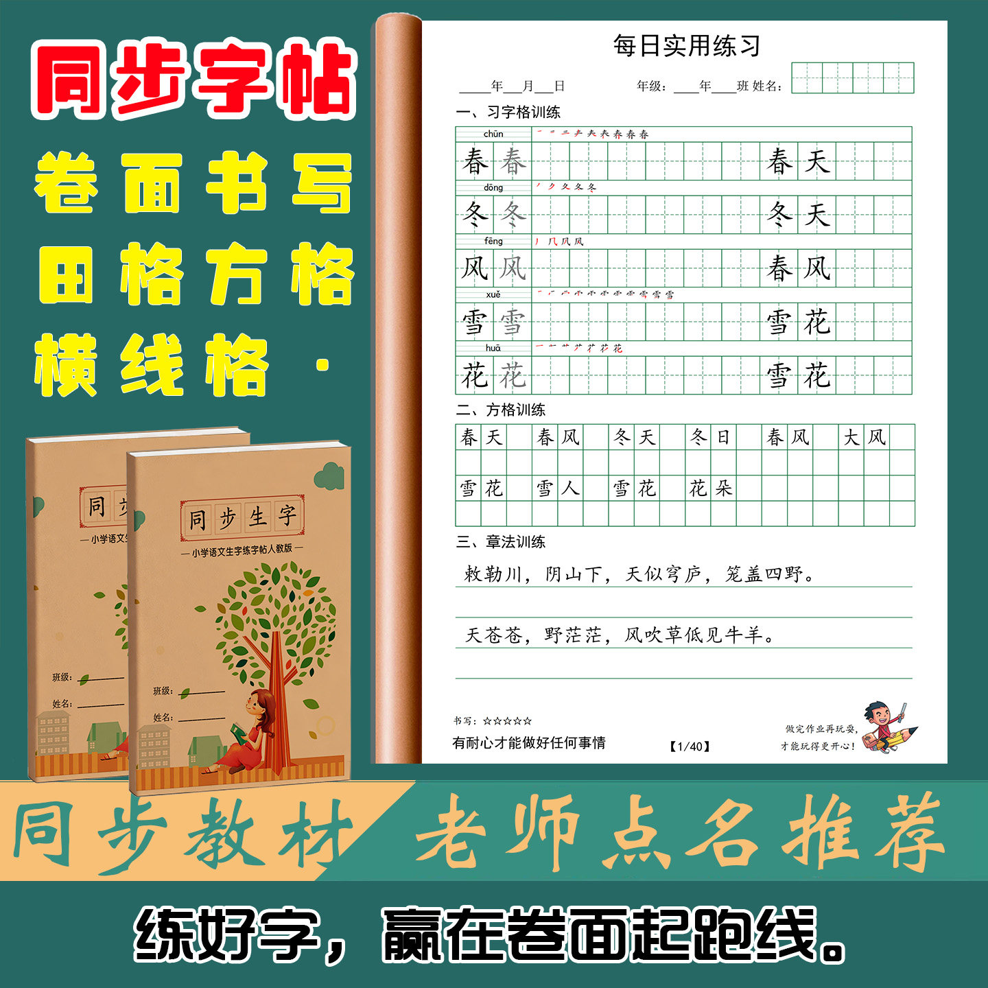 卷面书写同步练字帖小学生三四五六一二年级下册方格横线组词古诗