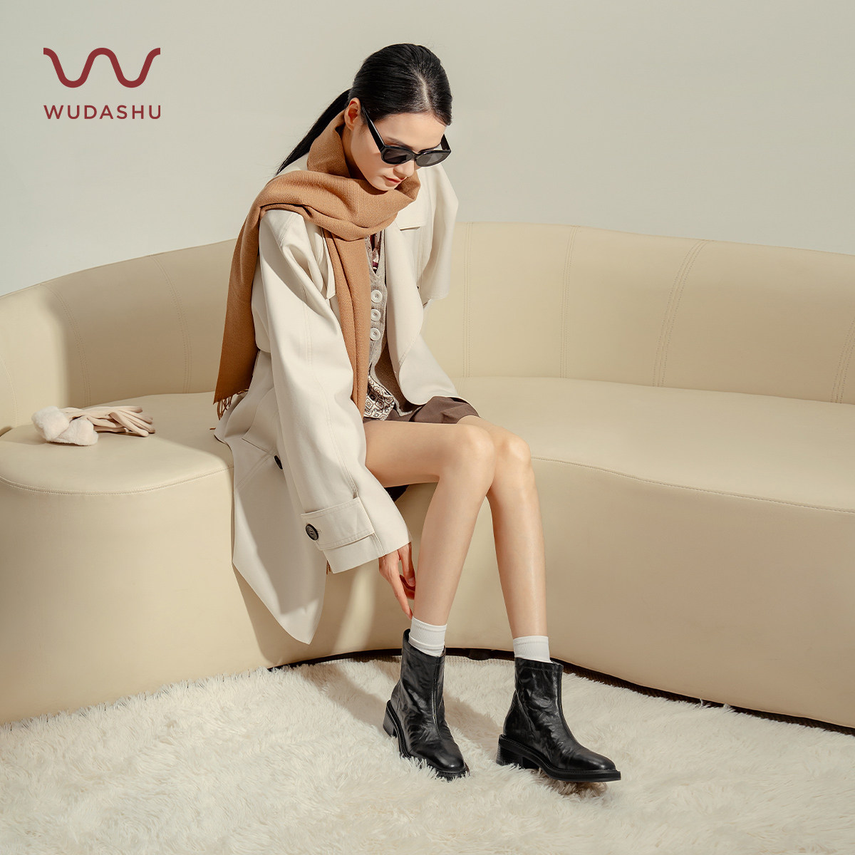 吴大叔2025秋冬新款鹅绒靴气垫真皮加绒雪地靴短靴粗跟气质靴子女