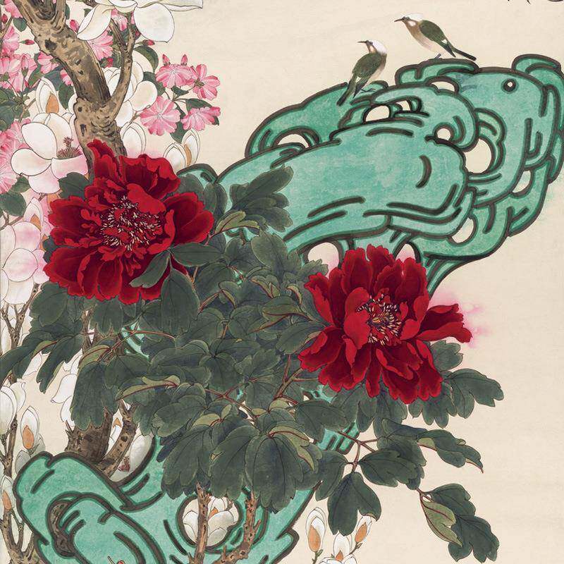 【质享家】家纺家饰-轻奢/复古国画玄关竖款富贵满堂花鸟卷轴挂画
