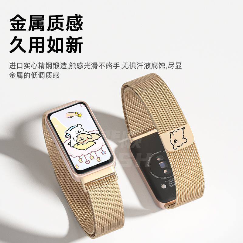 适用华为手环10表带手环8/9新款可爱小狗米兰尼斯磁吸金属7替换腕带运动智能手环七八九十代男女生高级感