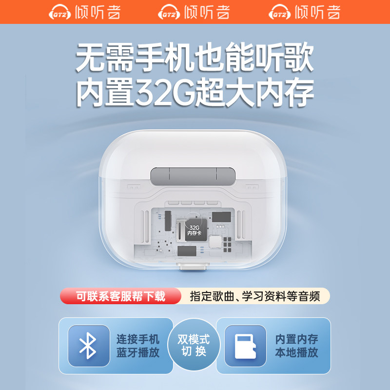 倾听者蓝牙耳机无线智能触屏MP3随身听一体式插卡运动自带内存