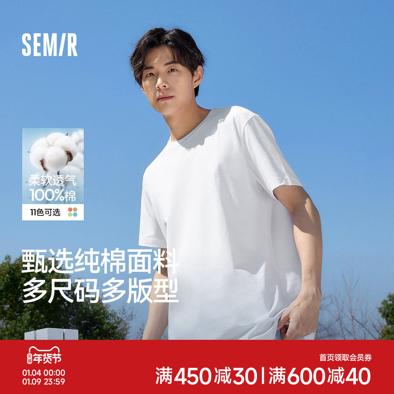 纯棉白色t恤森马短袖T恤长袖男装2025夏秋新款情侣纯色上衣打底衫