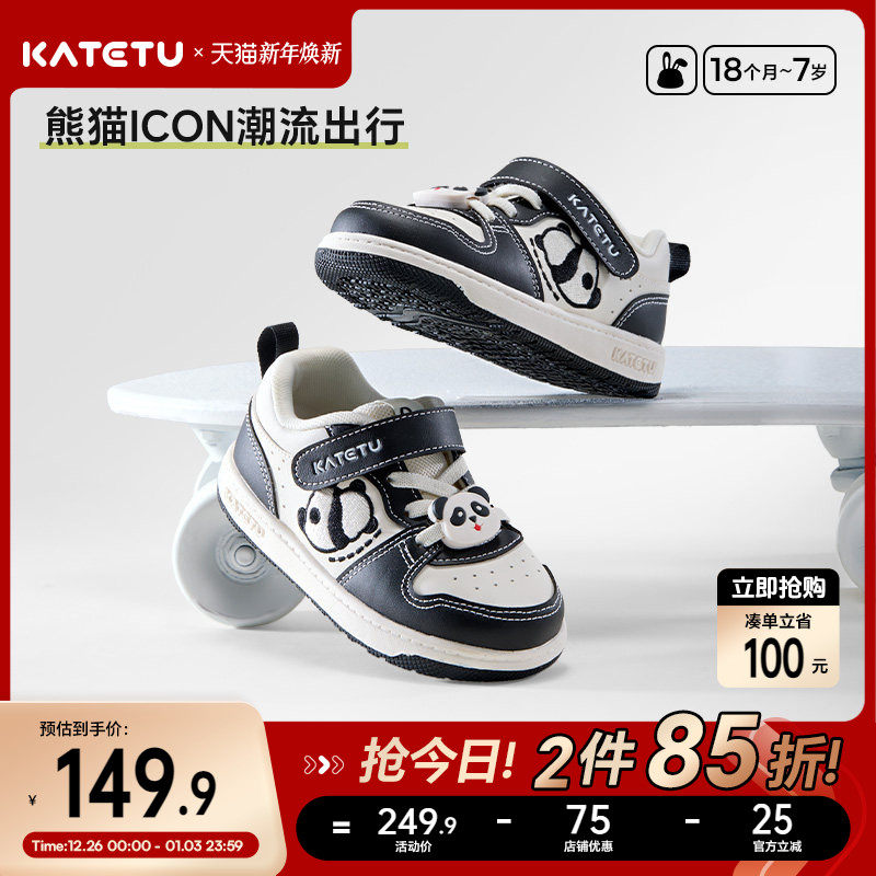 卡特兔女宝童鞋儿童板鞋男童2025秋季男宝新品女童鞋子宝宝熊猫鞋