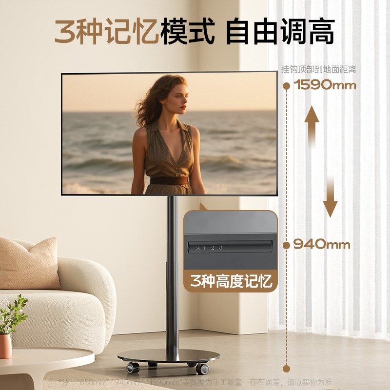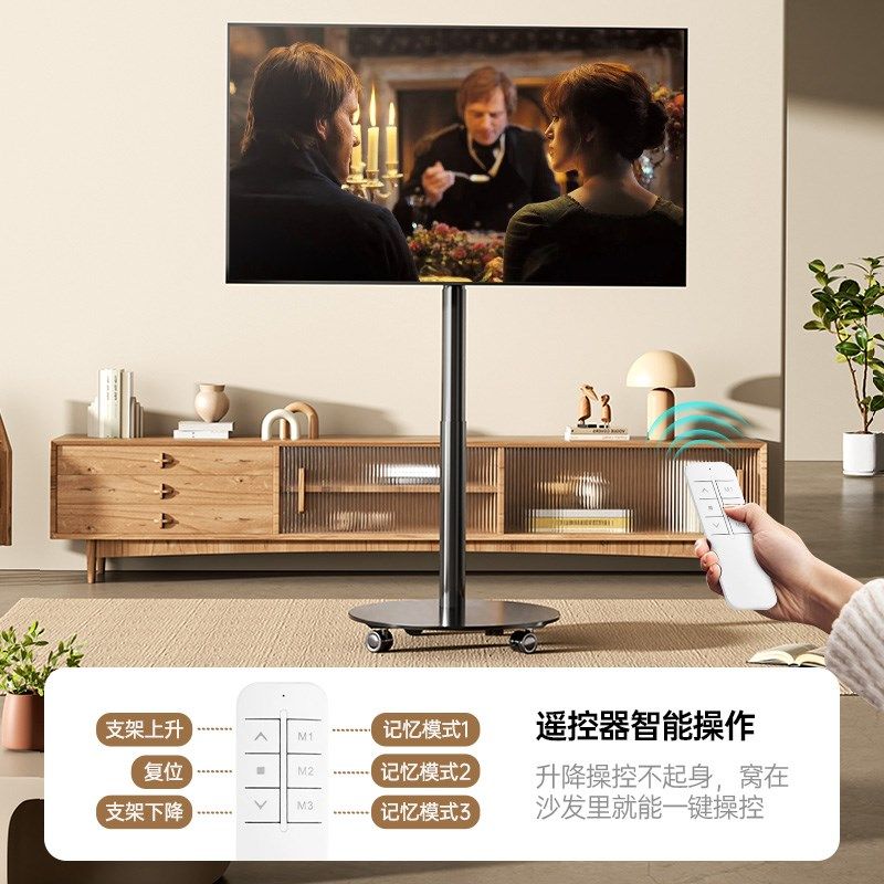 智能电动电视机移动支架遥控升降落地式带轮推车65/75寸通用挂架