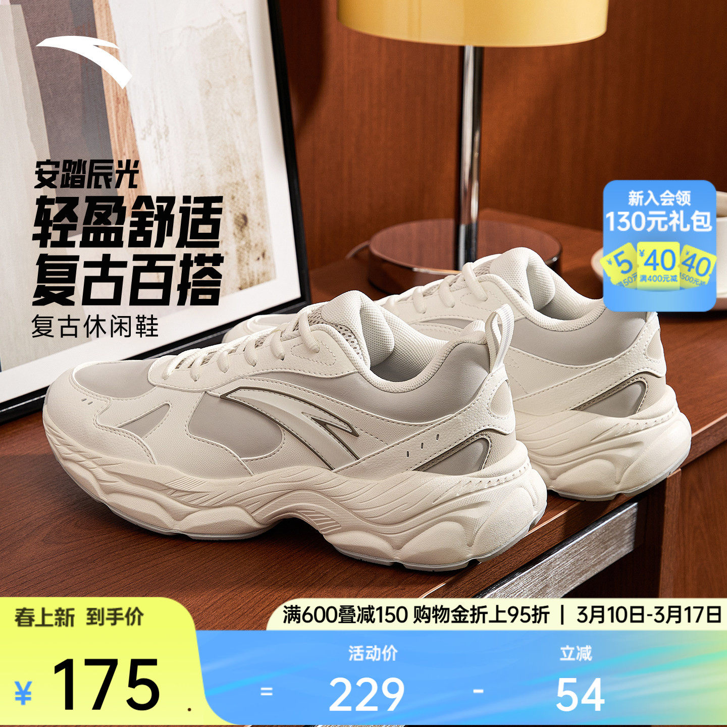 安踏辰光丨轻质厚底增高休闲鞋男鞋春季软底舒适百搭潮流运动鞋
