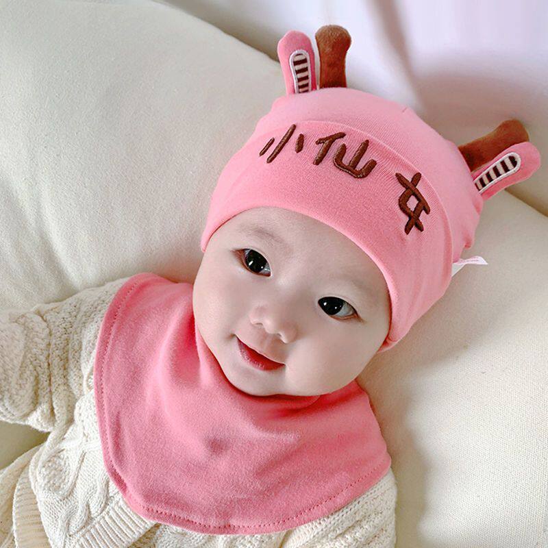 宝宝帽子春秋男孩2025新款女宝纯棉儿童冬季防风堆堆帽围脖两件套