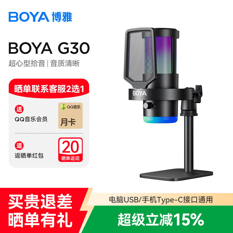 BOYA博雅G30电脑麦克风桌面麦克风 主播直播设备降噪游戏麦