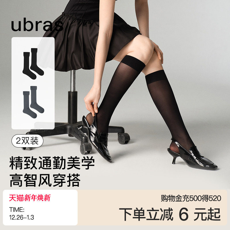 ubras小腿袜元气慕斯高弹长筒袜子压力丝袜两双装2025年新款春夏