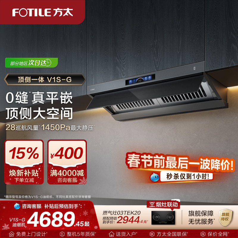 【新品】方太顶侧一体油烟机V1S-G家用平嵌抽油烟机大吸力旗舰店
