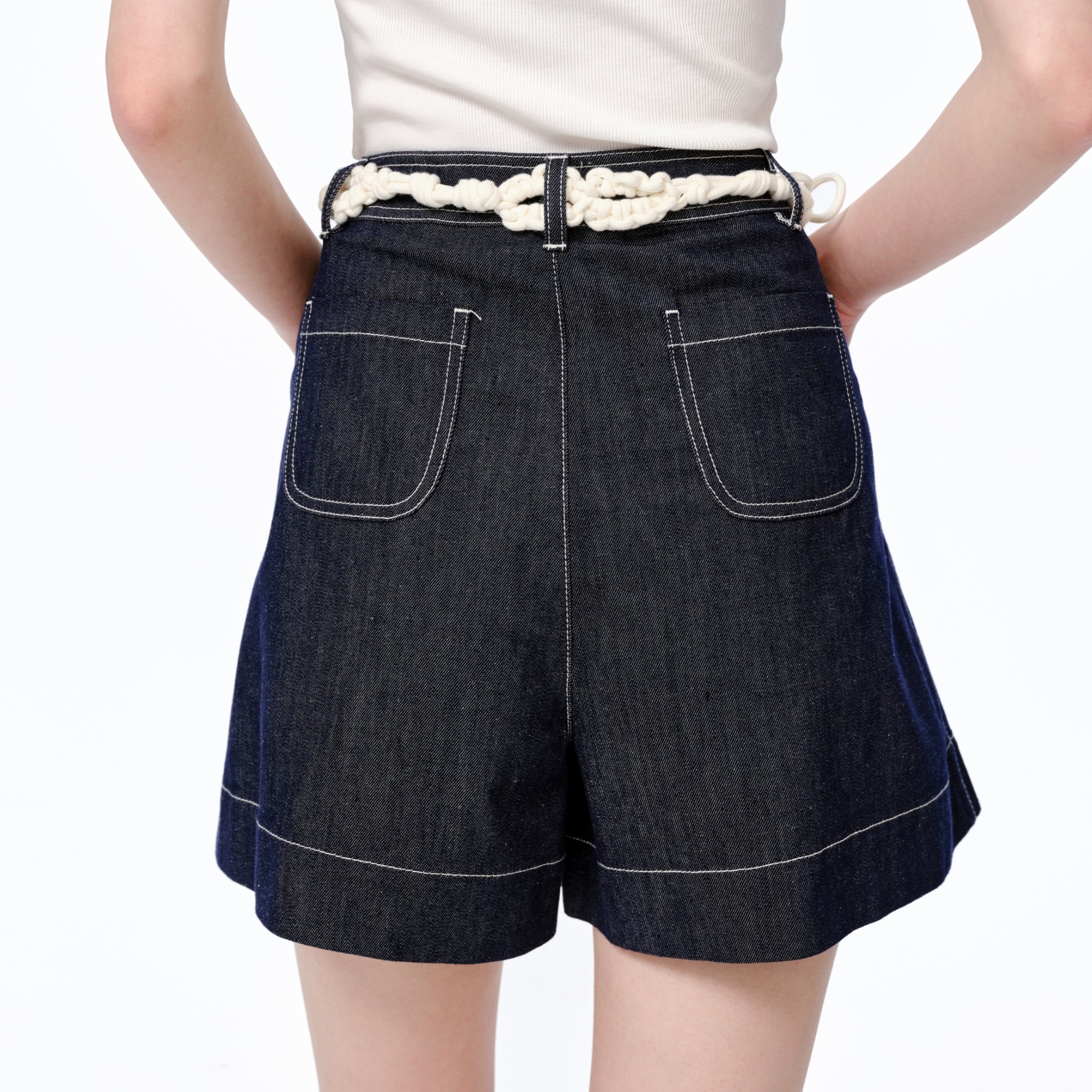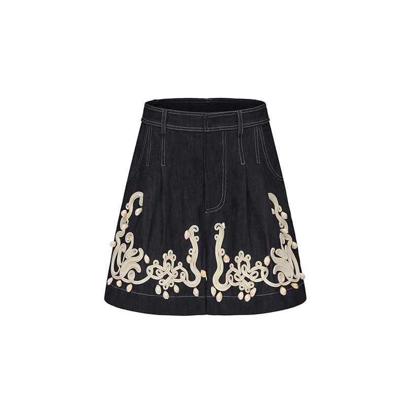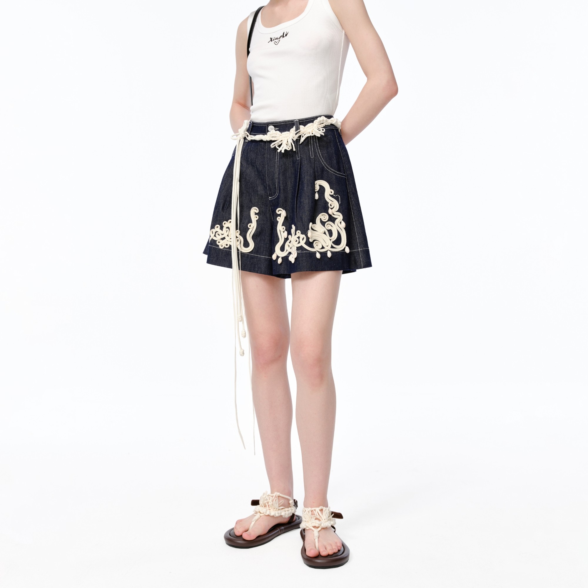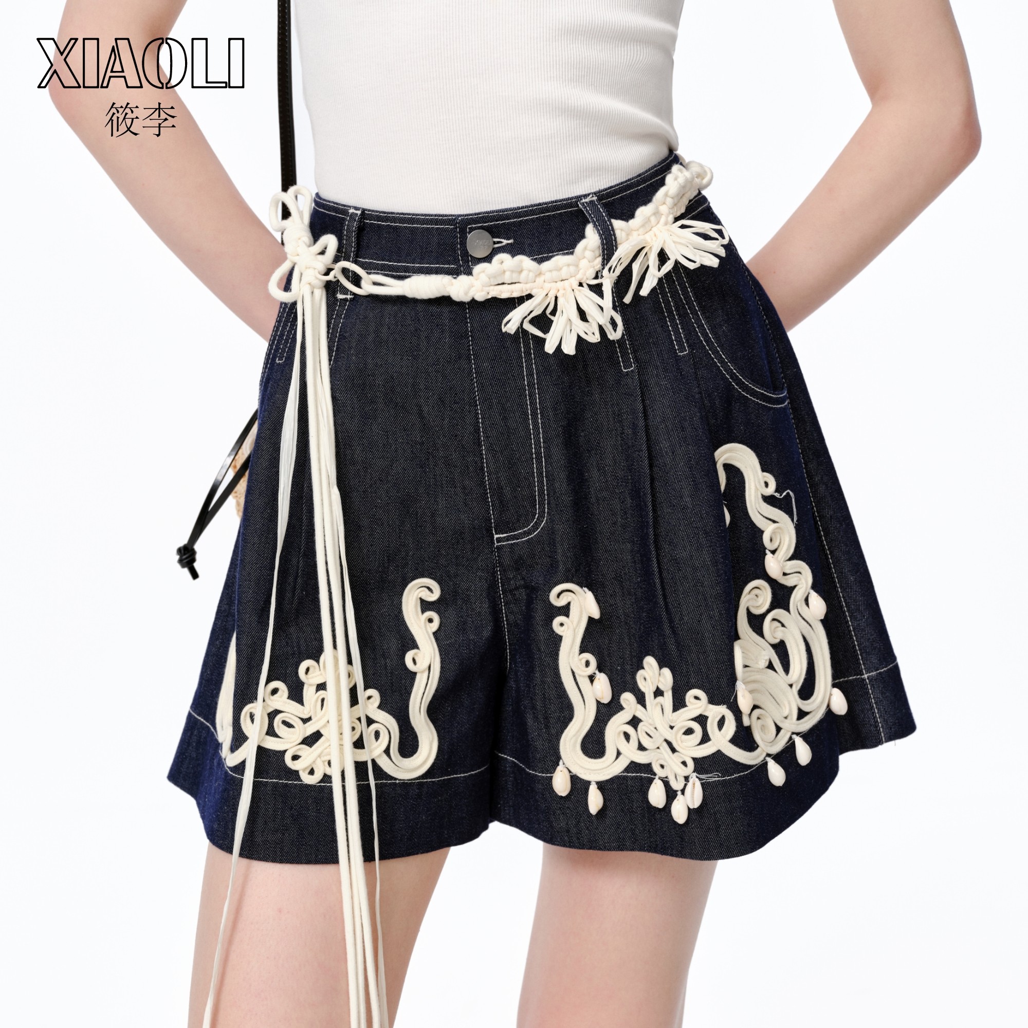 XIAOLI筱李 25春夏新品绳盘绣高腰牛仔短裤