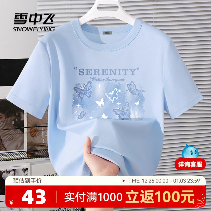 新国货100纯棉t恤女130支双面丝光棉短袖V圆领宽松大码夏季鸡心领