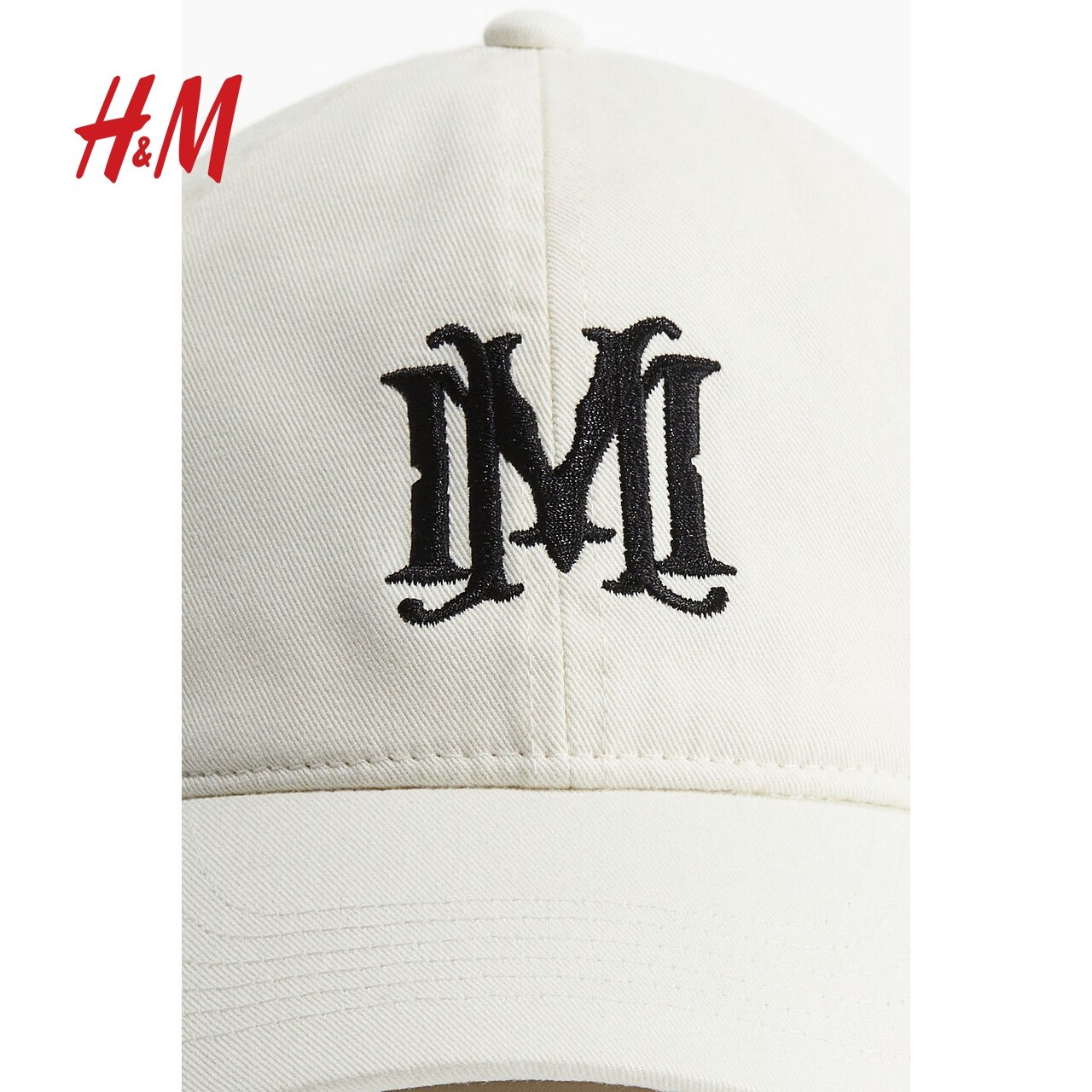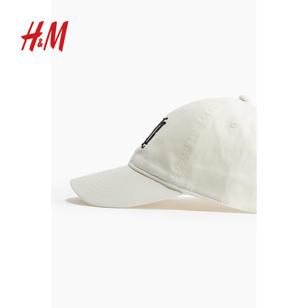 HM女士帽子2025年冬季新款刺绣图案斜纹布鸭舌帽1232067