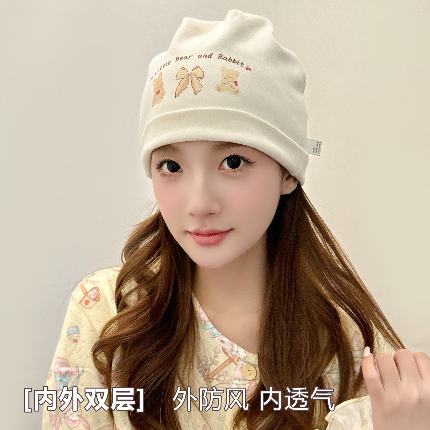 婧麒[芙熊]月子帽秋冬产后纯棉产妇帽坐月子头巾发带孕妇防风帽子