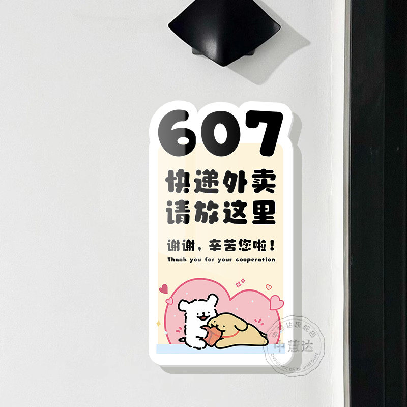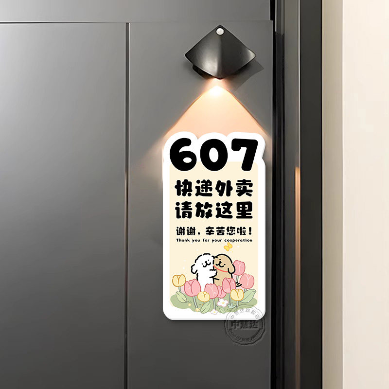 外卖放门口指示牌快递外卖提示牌创意入户线条小狗门牌定制请勿敲门提示牌快递放置区家门口放快递神器装饰品