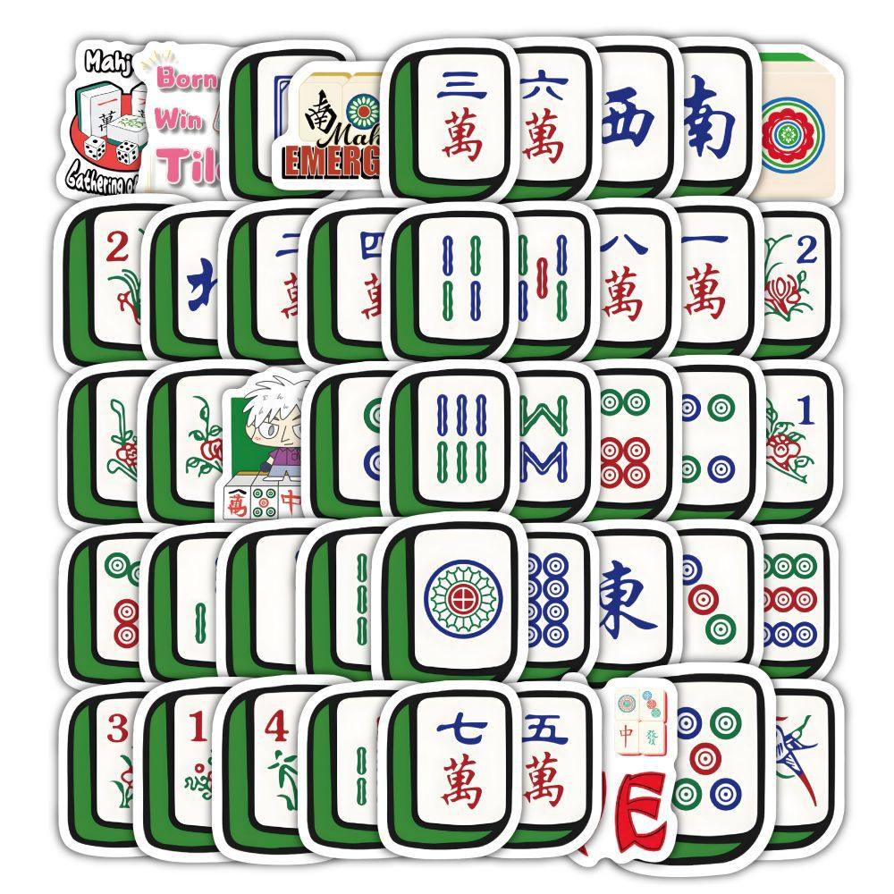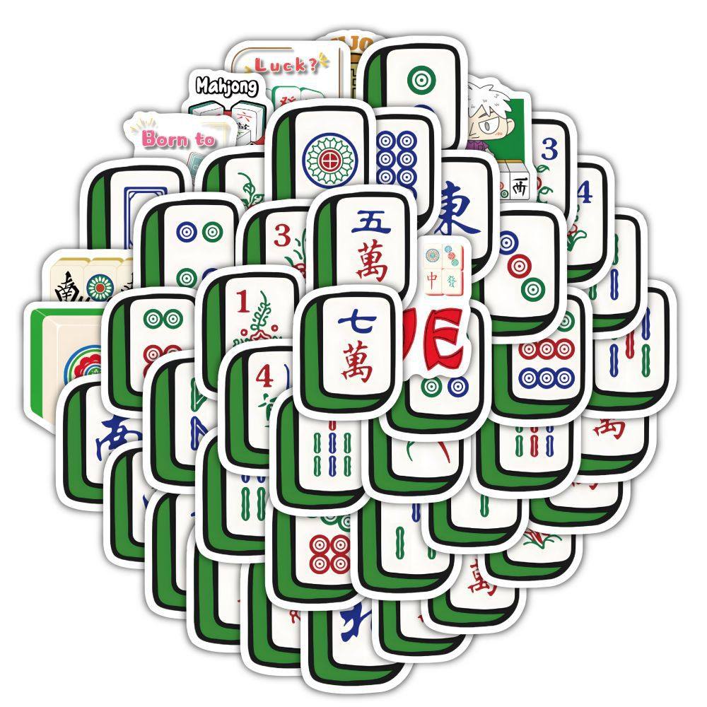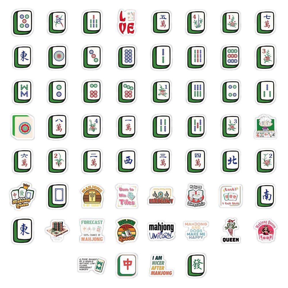 60张国粹卡通麻将贴纸创意个性手机装饰水杯笔记本行李箱电脑贴画