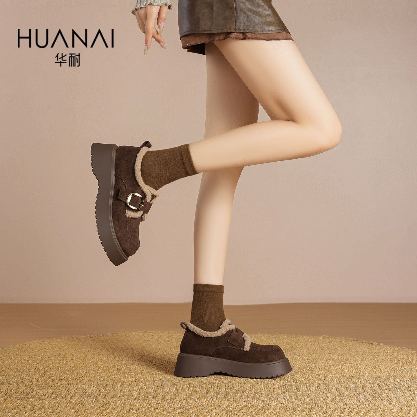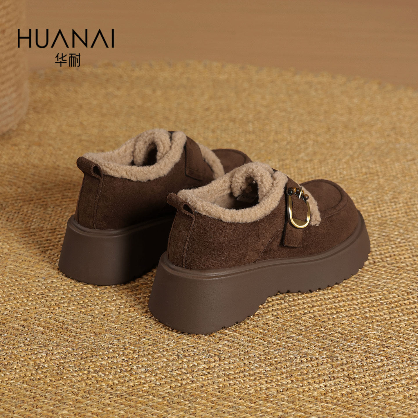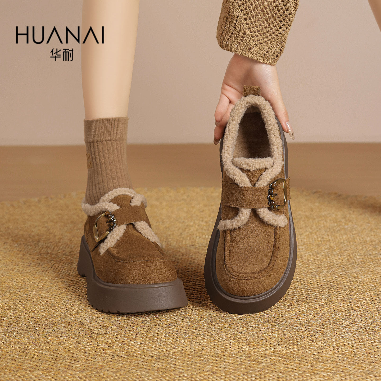 华耐厚底雪地靴女2025新款冬季加绒乐福鞋保暖毛毛勃肯鞋东北棉鞋