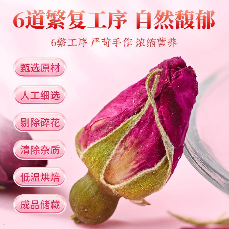 紫金玫瑰散装花冠50g 山东平阴玫瑰大朵干花代用花草食用花瓣茶叶