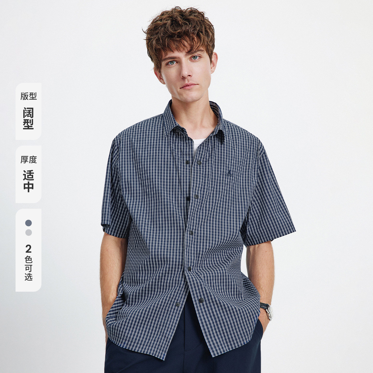 Navigare意大利小帆船宽松短袖衬衫男士2026夏季休闲格子衬衣外套