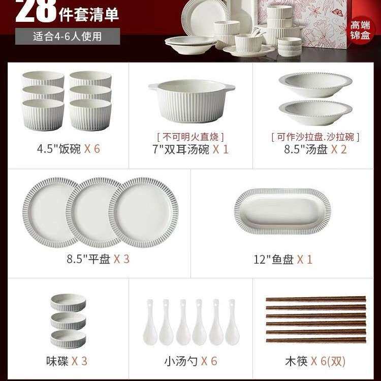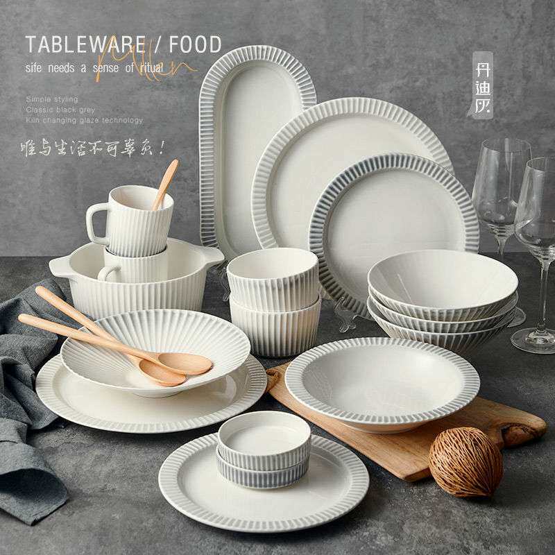 丹迪灰碗碟套装家用碗盘套装碗具碗筷组合轻奢法式陶瓷餐具套装