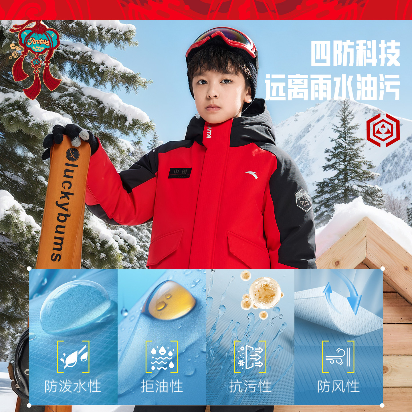 马年新年红色安踏冰甲羽绒六度芯儿童热返科技25年冬季铂晶羽绒服