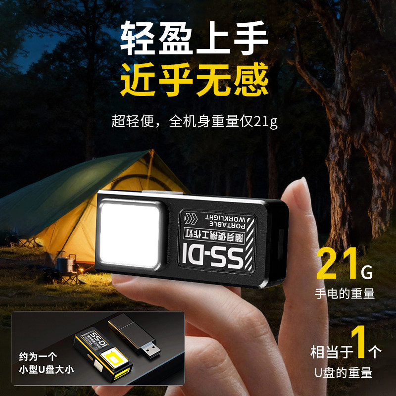 LED多功能工作灯磁吸小迷你户外型便携强光充电超亮手电筒维修灯