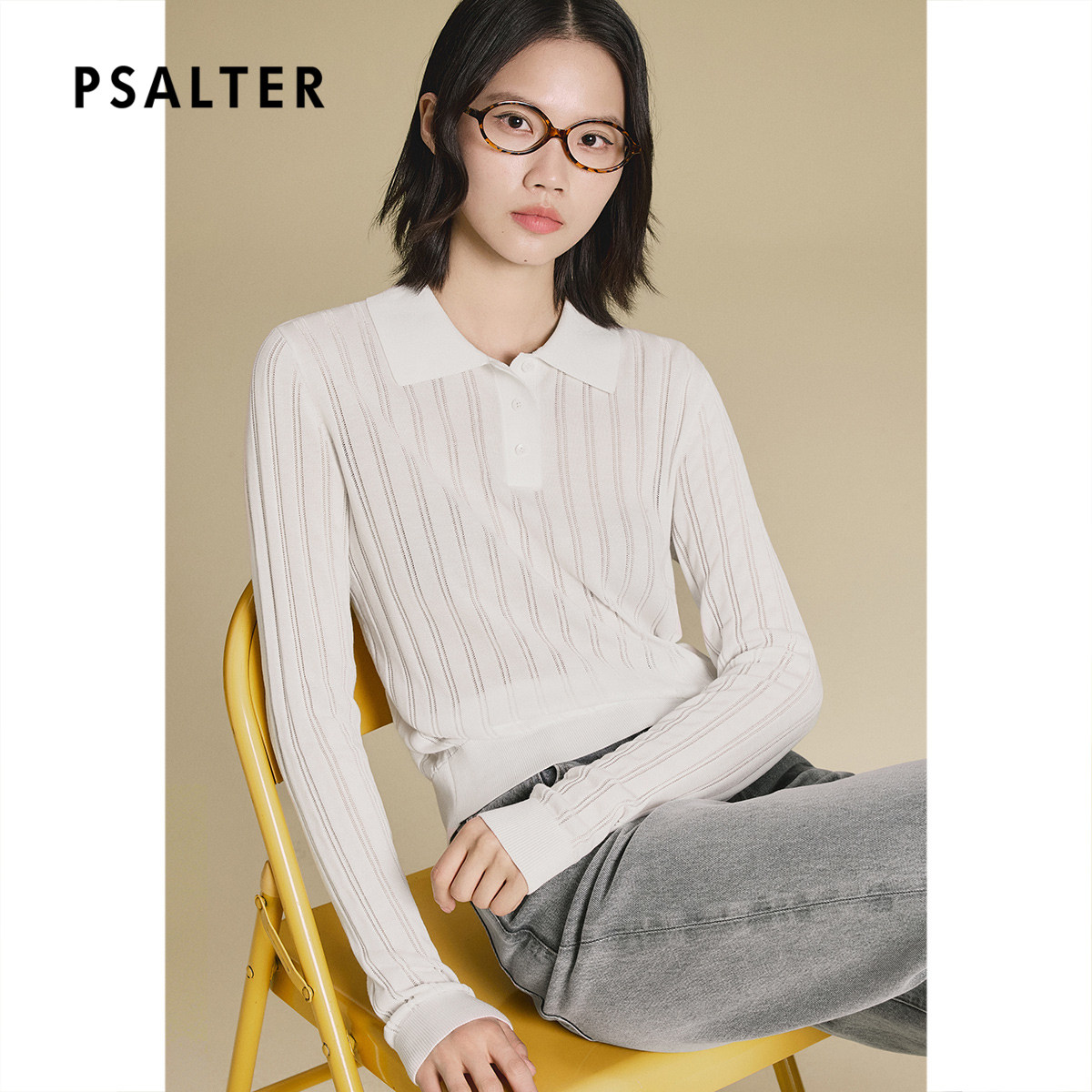 PSALTER诗篇莱赛尔修身直筒长袖翻领天丝针织衫2025秋款