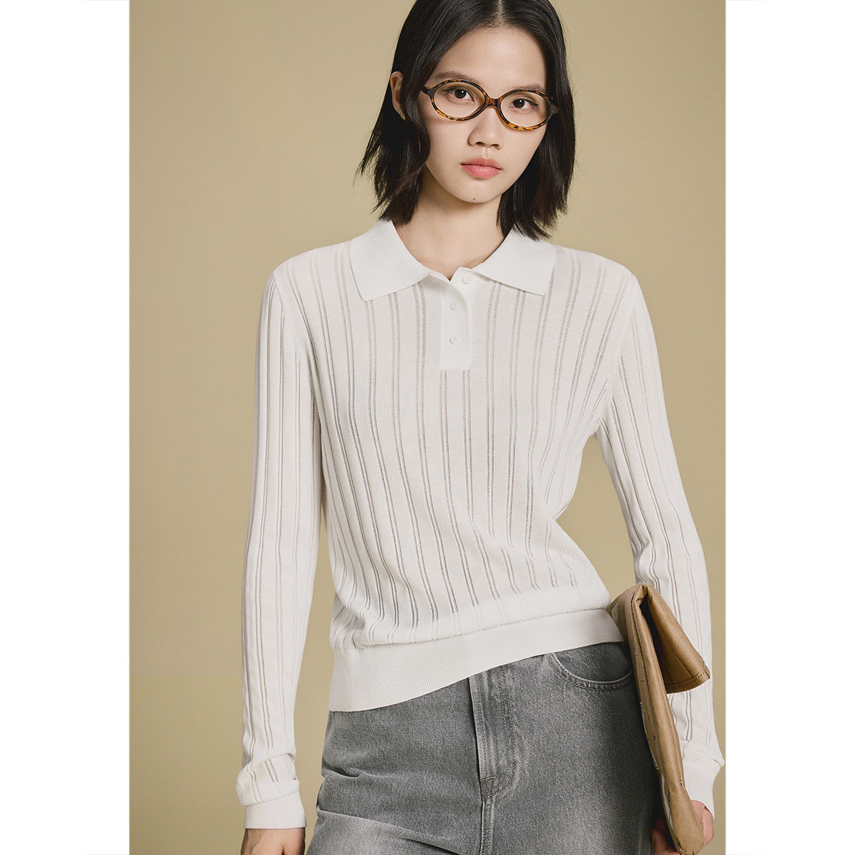蕉下针织衫polo领肌底衣修身显瘦新款白色长袖T恤内搭上衣打底衫