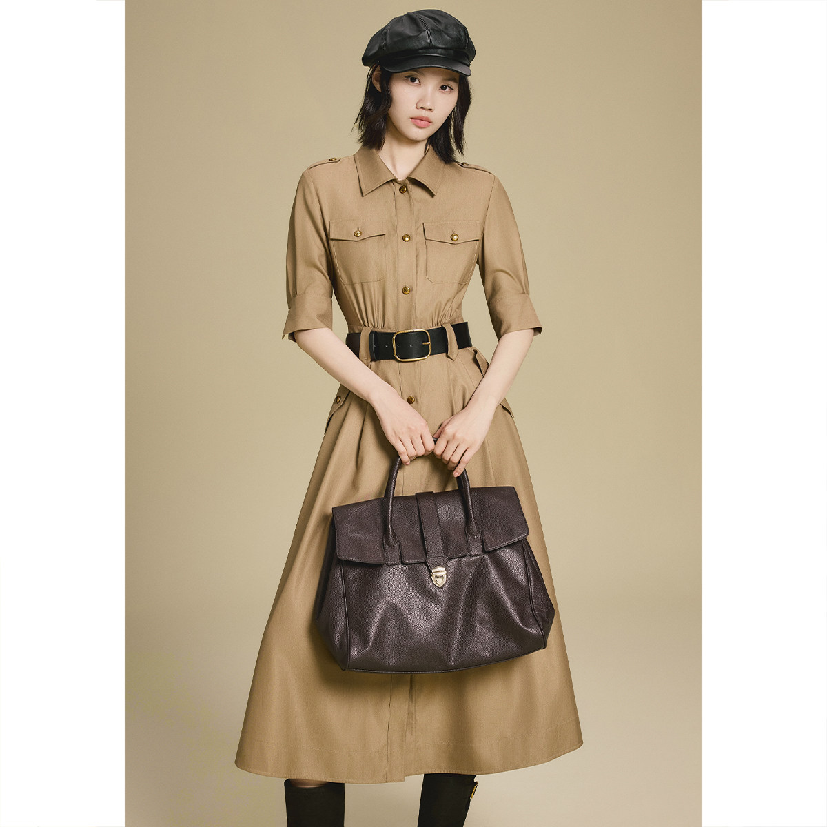 森马连衣裙女收腰衬衫裙复古休闲潮流百搭夏季美拉德纯色短裙气质