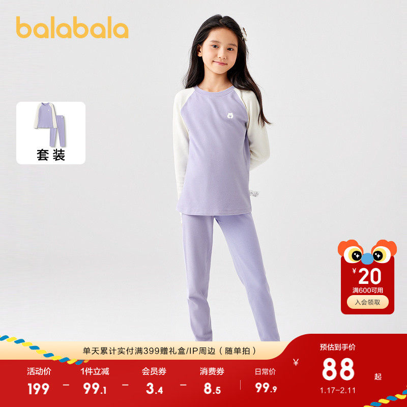 巴拉巴拉女童秋衣秋裤套装秋冬儿童保暖内衣暖绒睡衣拼色舒适亲肤
