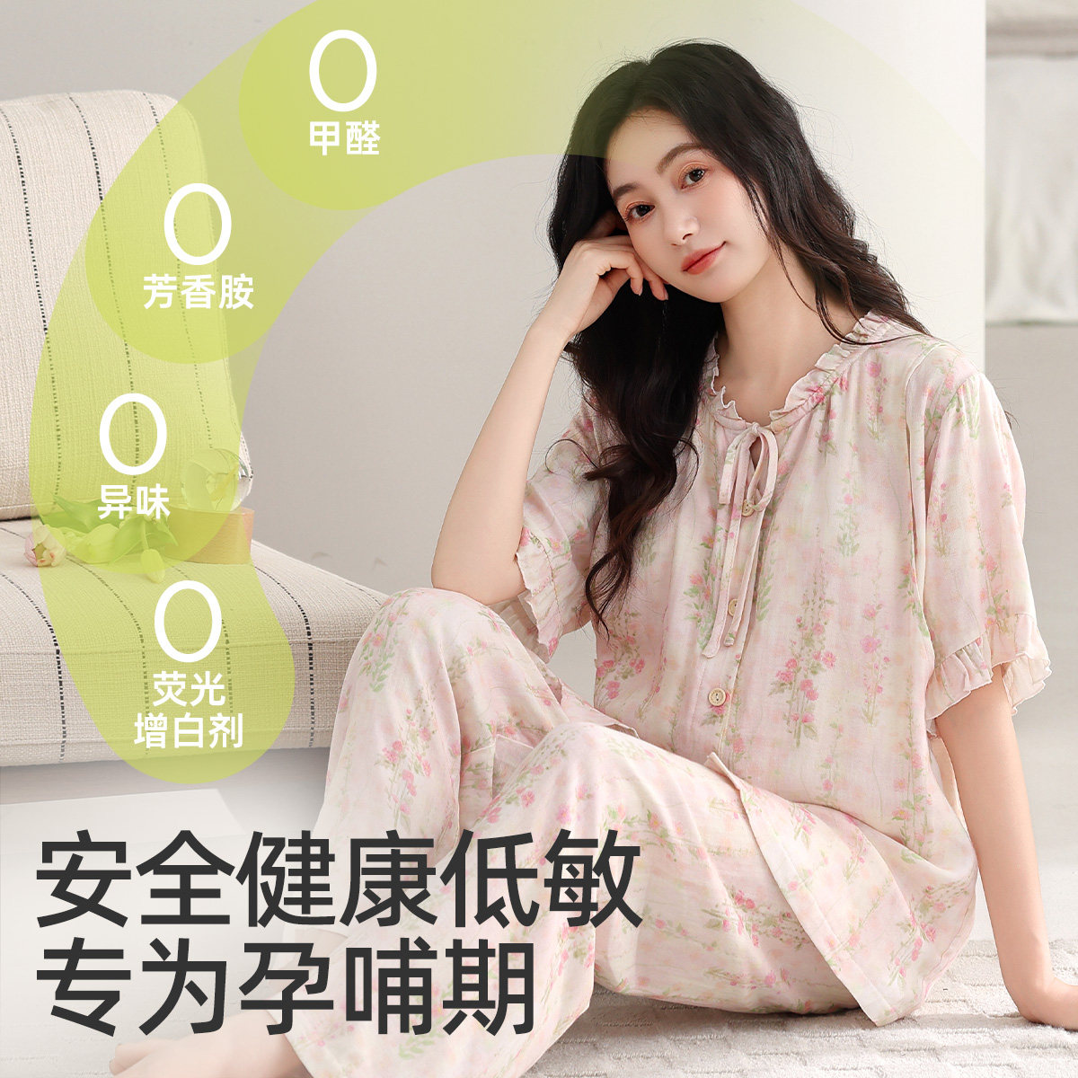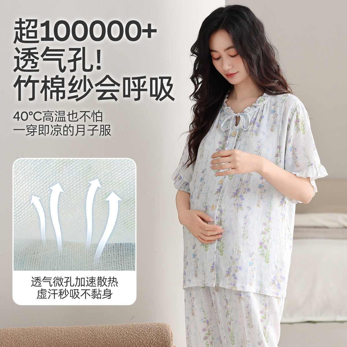 婧麒月子服夏季产后薄款短袖竹棉9月份8纯孕妇睡衣哺乳待产家居服