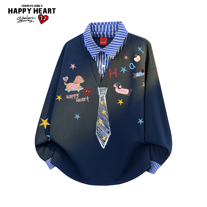 查尔斯桃心涂鸦领带假两件衬衫领加绒卫衣男春秋冬季情侣休闲上衣