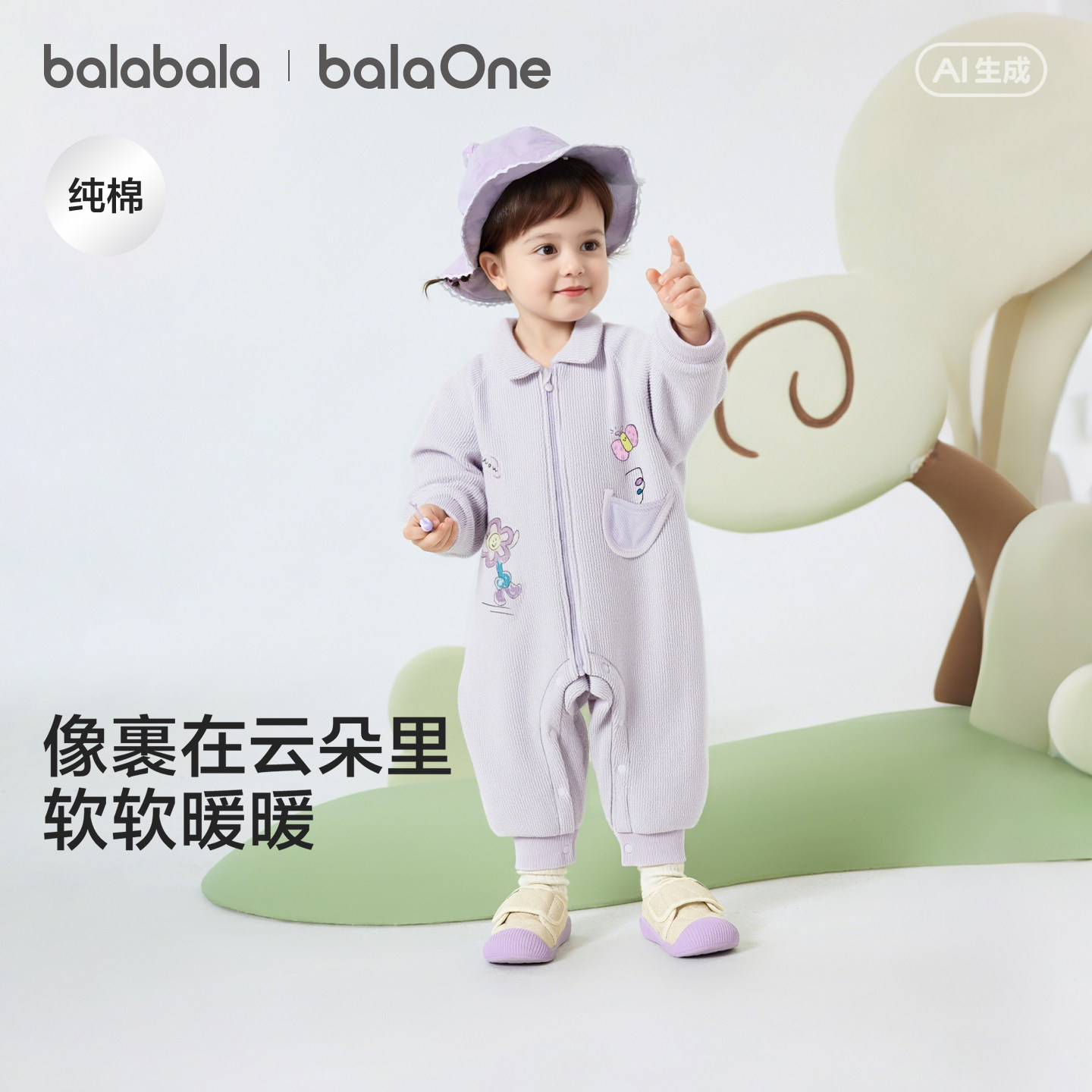 巴拉巴拉童装新生婴儿衣服宝宝外出连体衣2025新款春装加绒温暖萌
