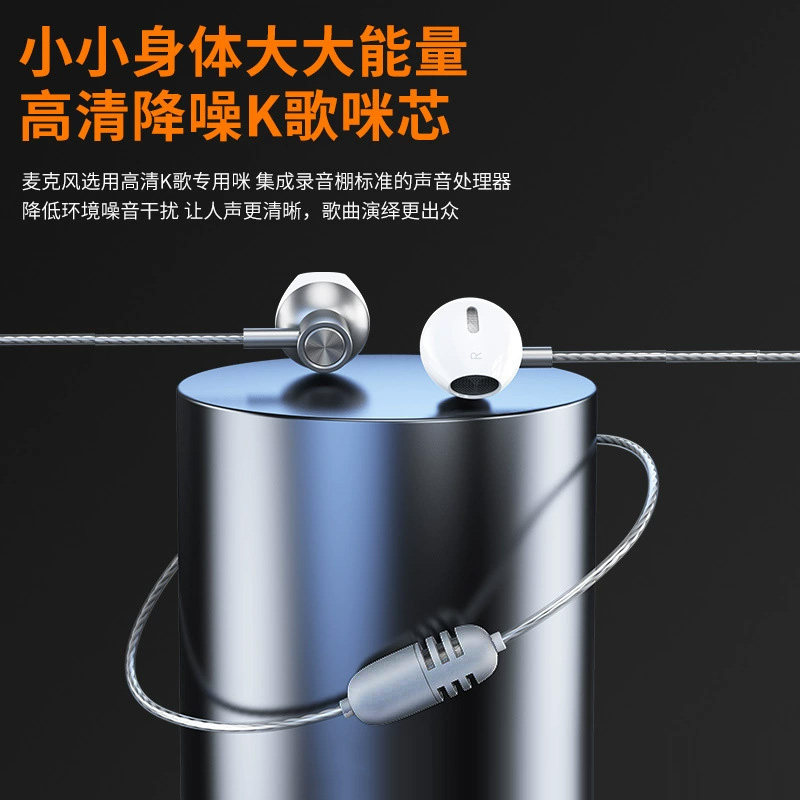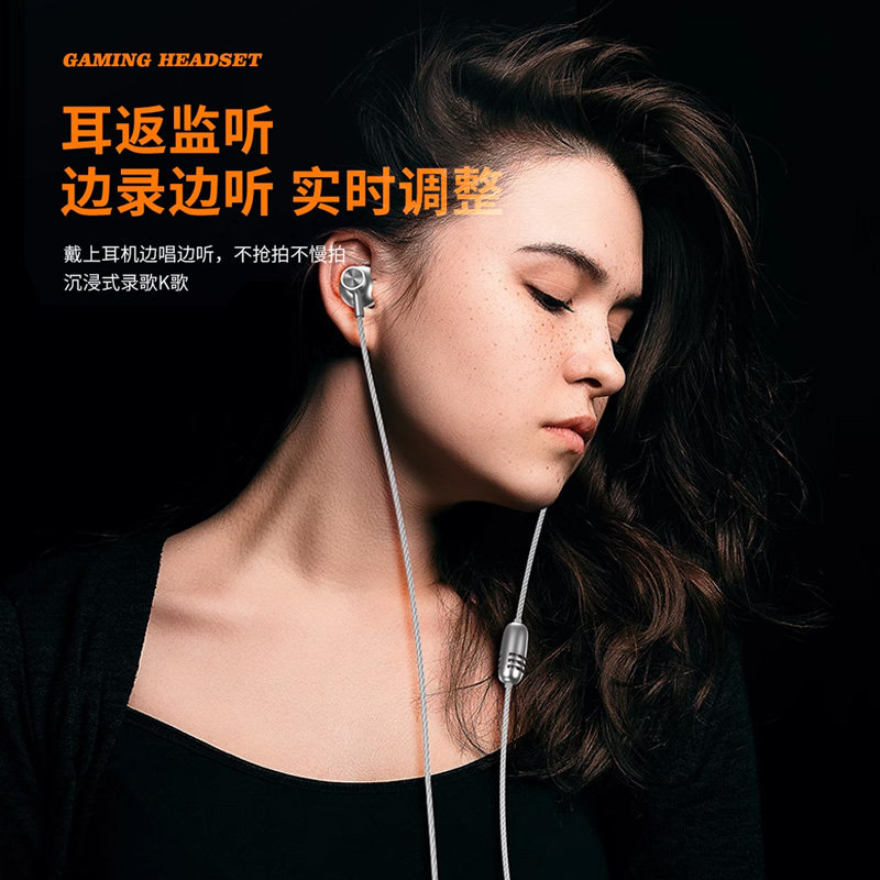 直播KTV录音混响唱歌K歌耳机内置声卡线控type-c入耳式有线耳机