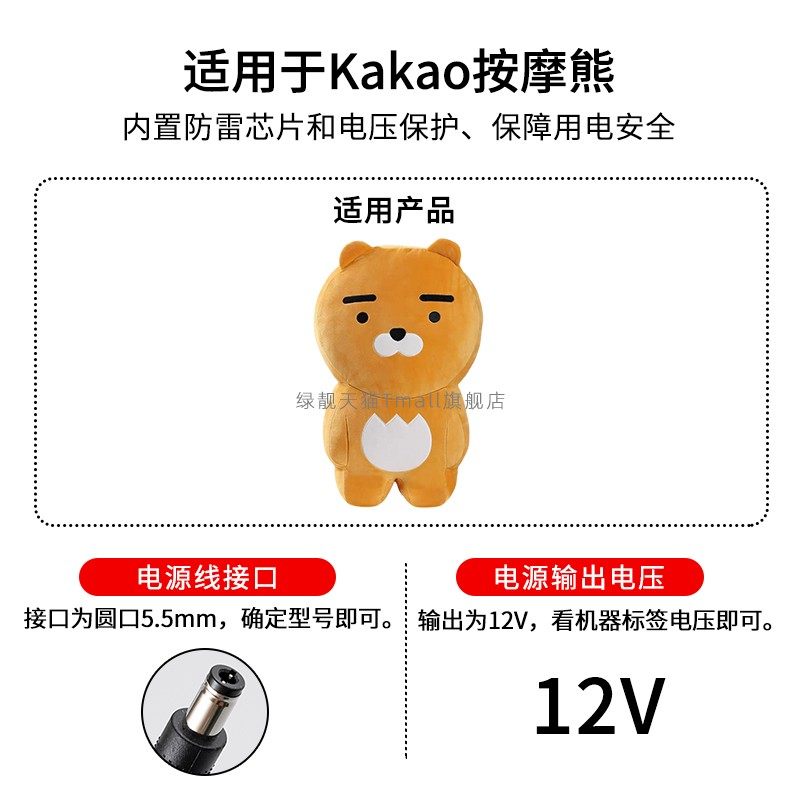 适用Kakao按摩熊韩国充电器12v2a/2000MA电源线按摩椅抱熊电源线12V甩脂机抱枕腰带按摩枕办公椅