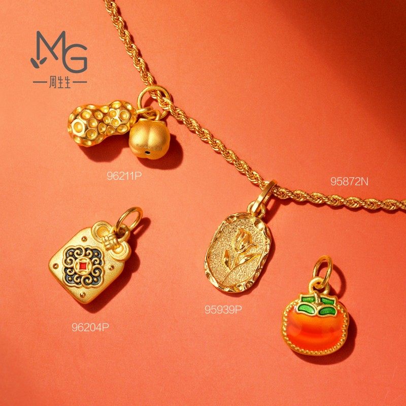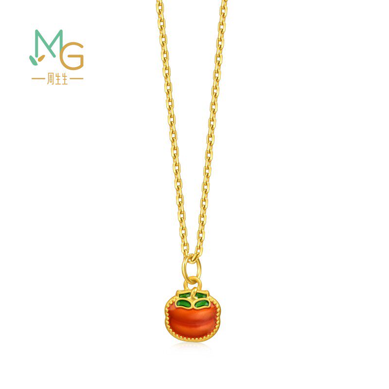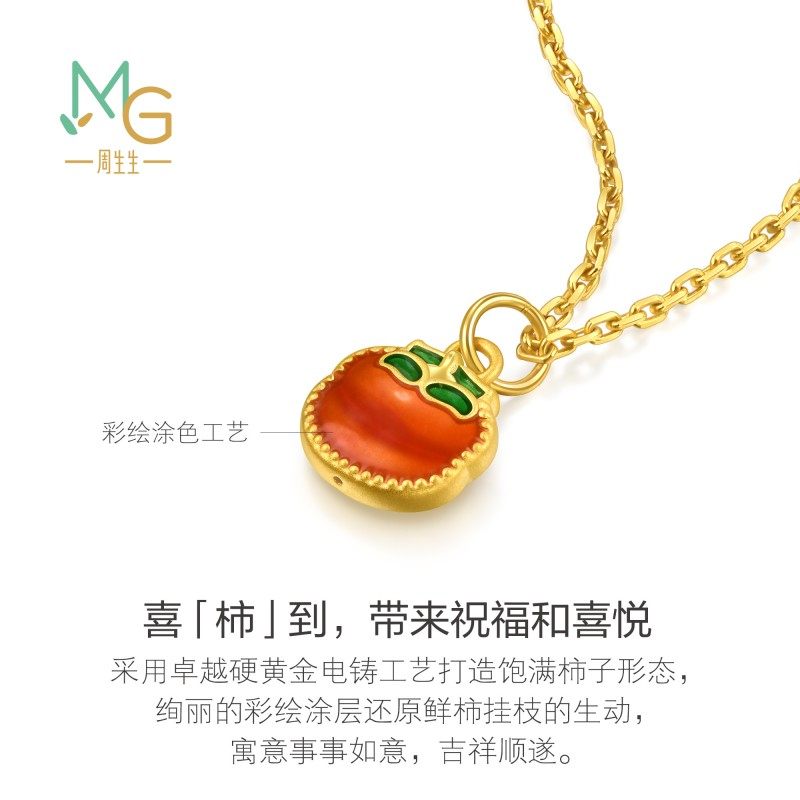圣诞周生生薄荷系列彩绘足金柿柿如意黄金小吊坠mini挂坠96203P