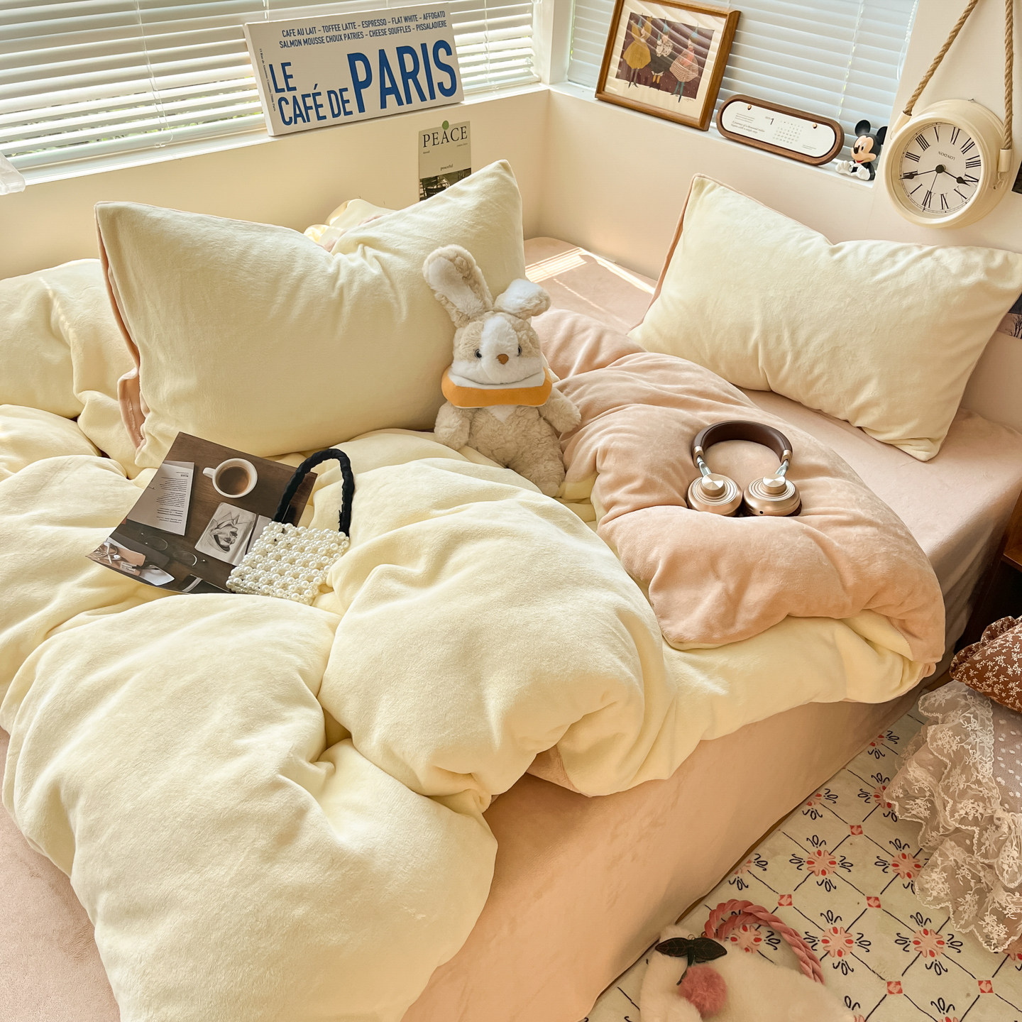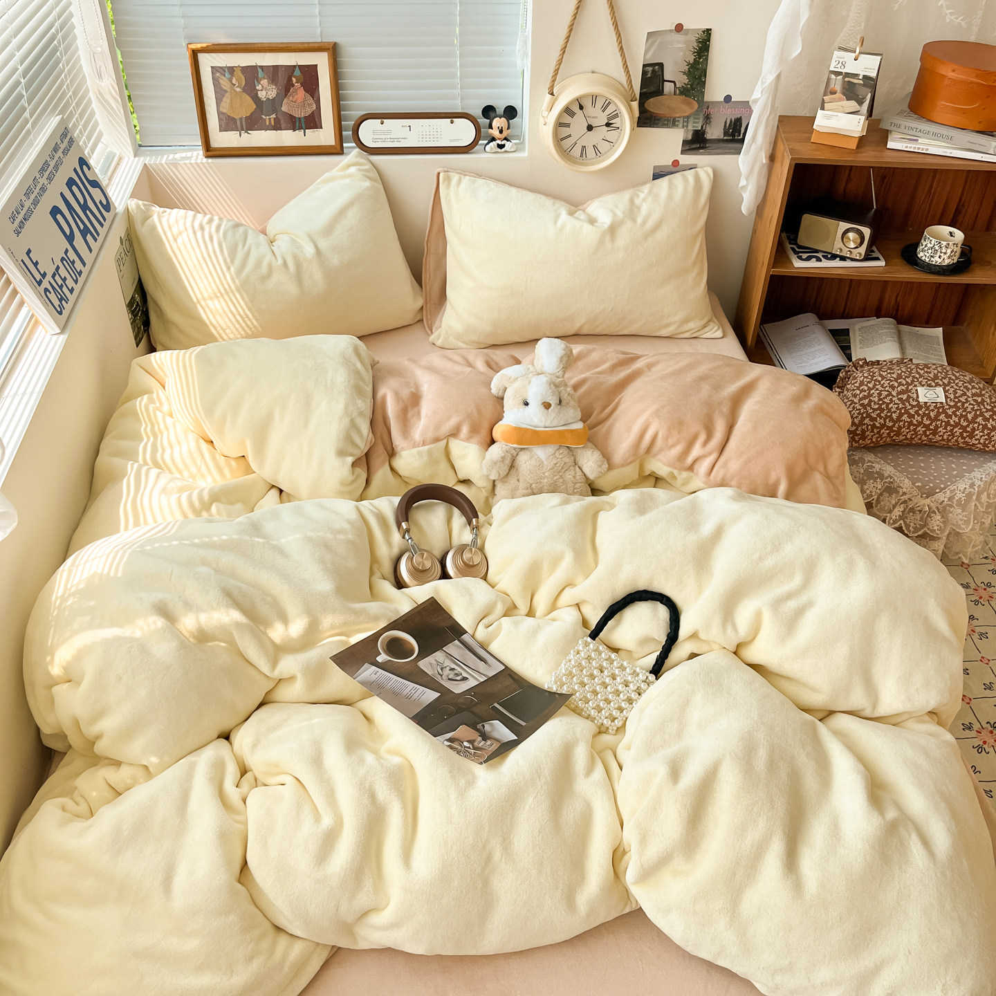 无印良品纯色秋冬牛奶绒四件套珊瑚绒床上绒三件套冬季加绒法兰绒