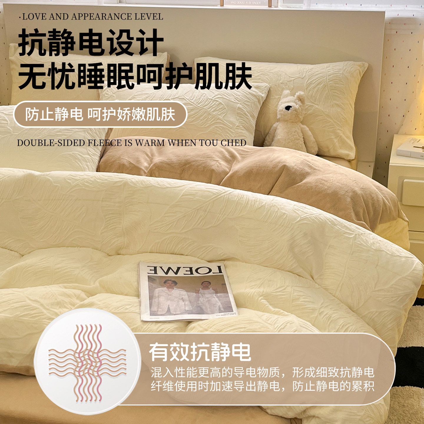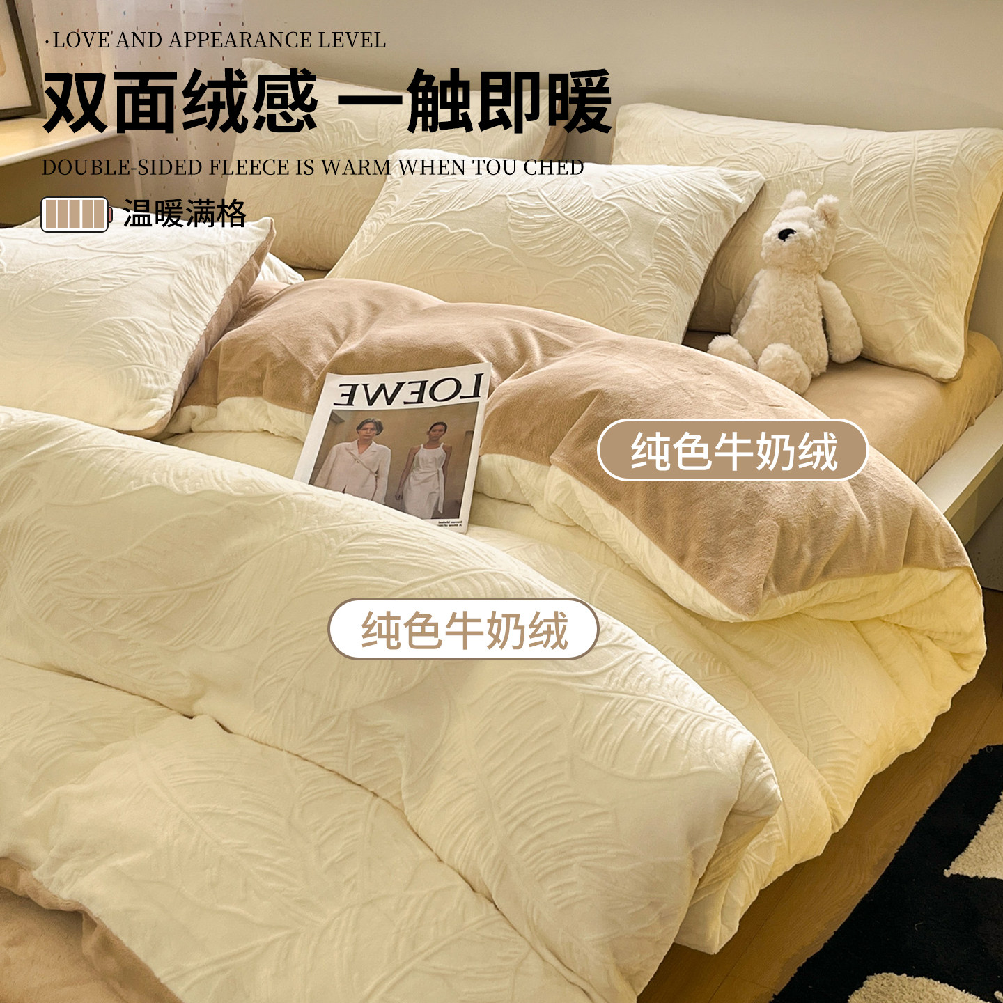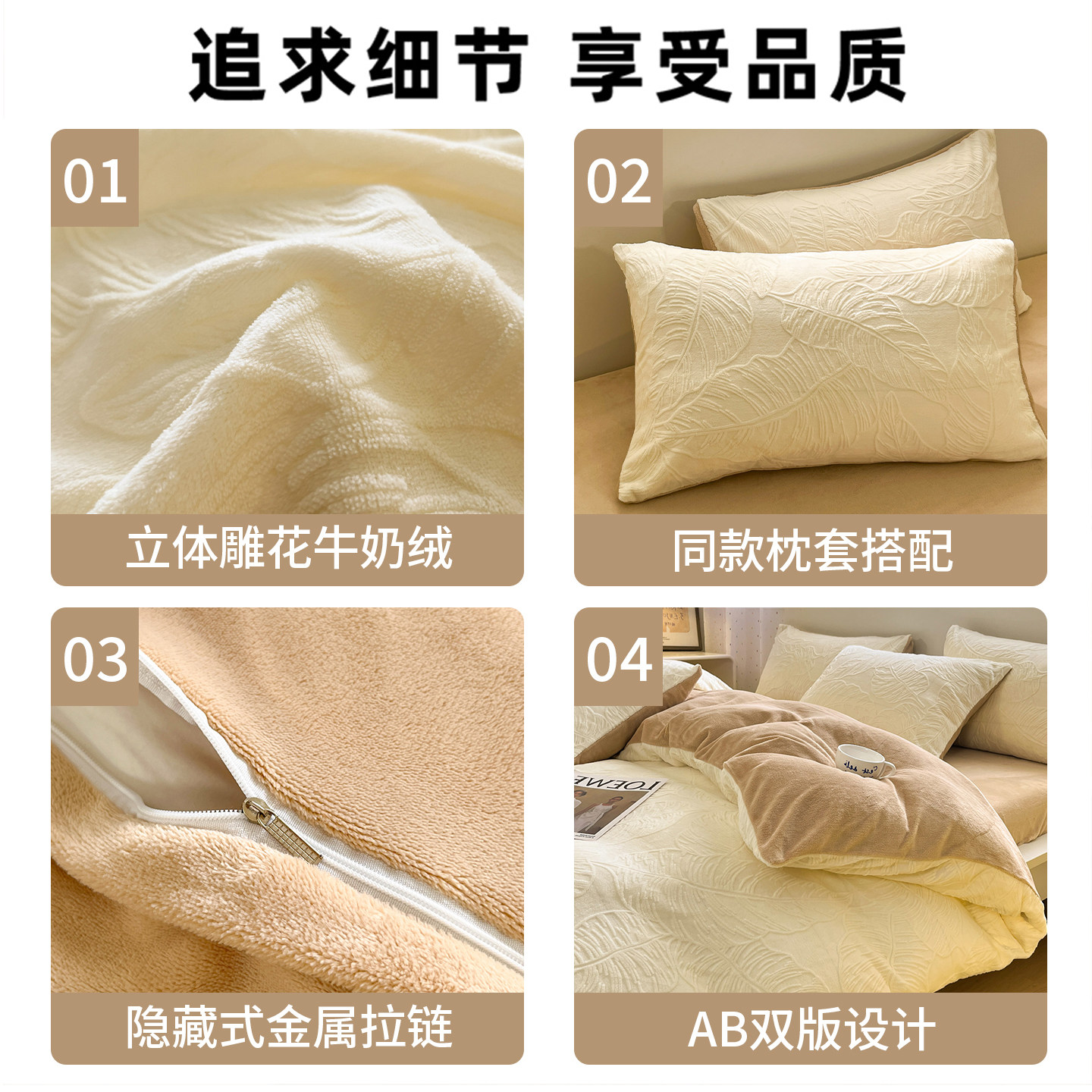 无印良品雕花牛奶绒四件套秋冬季珊瑚绒加厚床单加绒被套床上用品