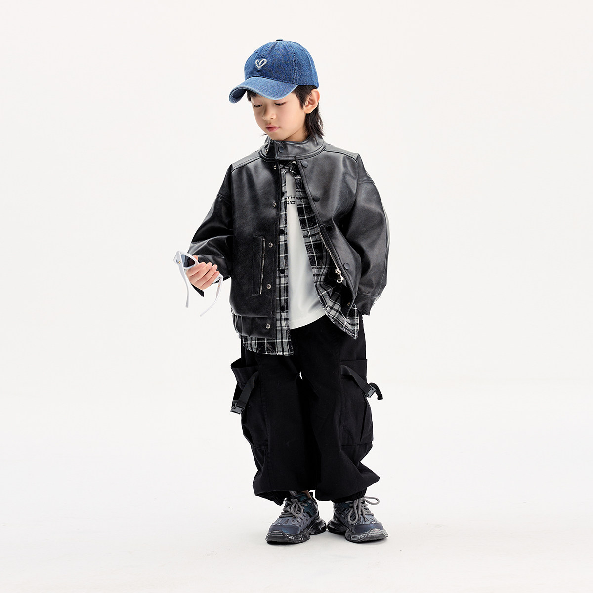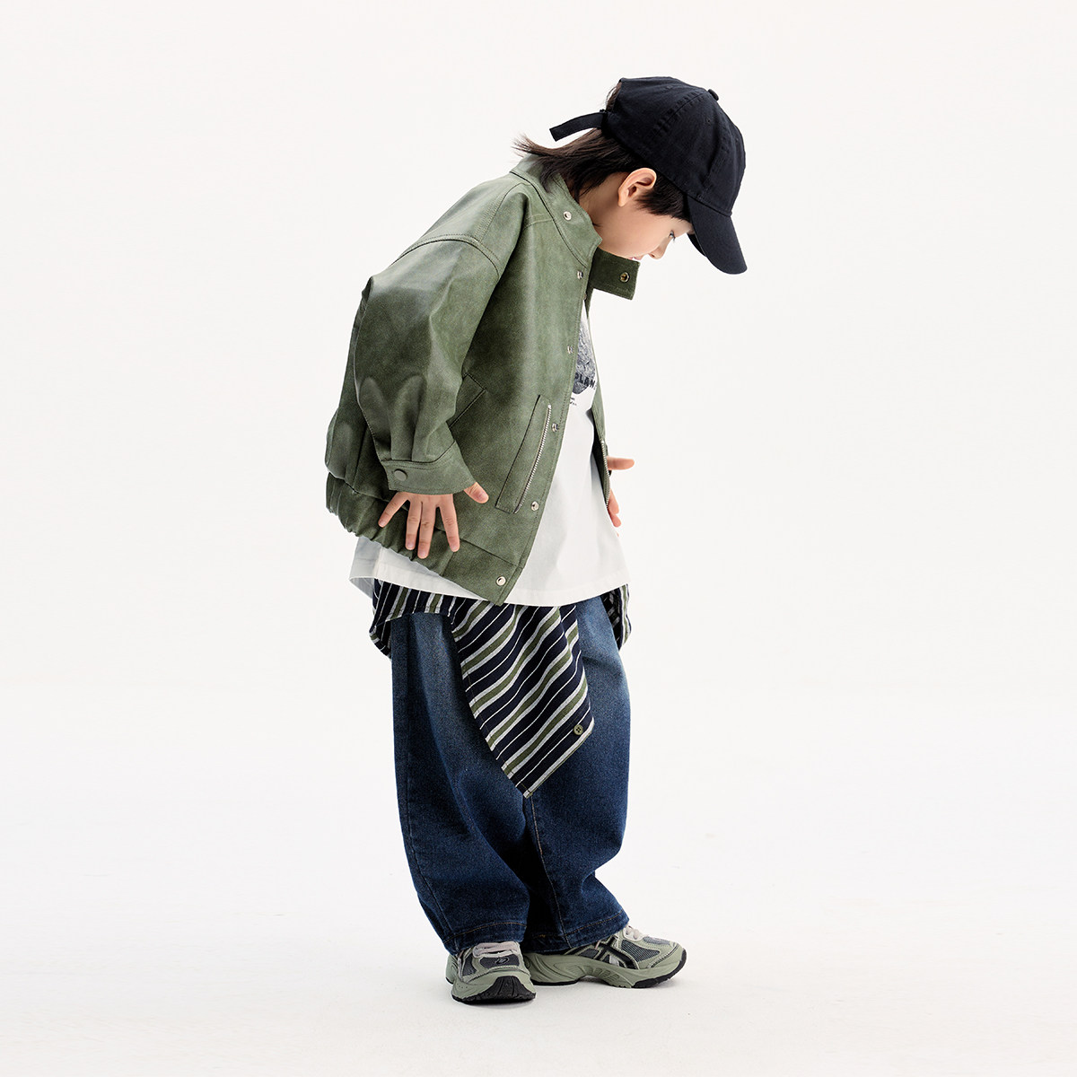 派町童装男童外套儿童复古水洗皮衣2026春季新款男孩衣服洋气时髦